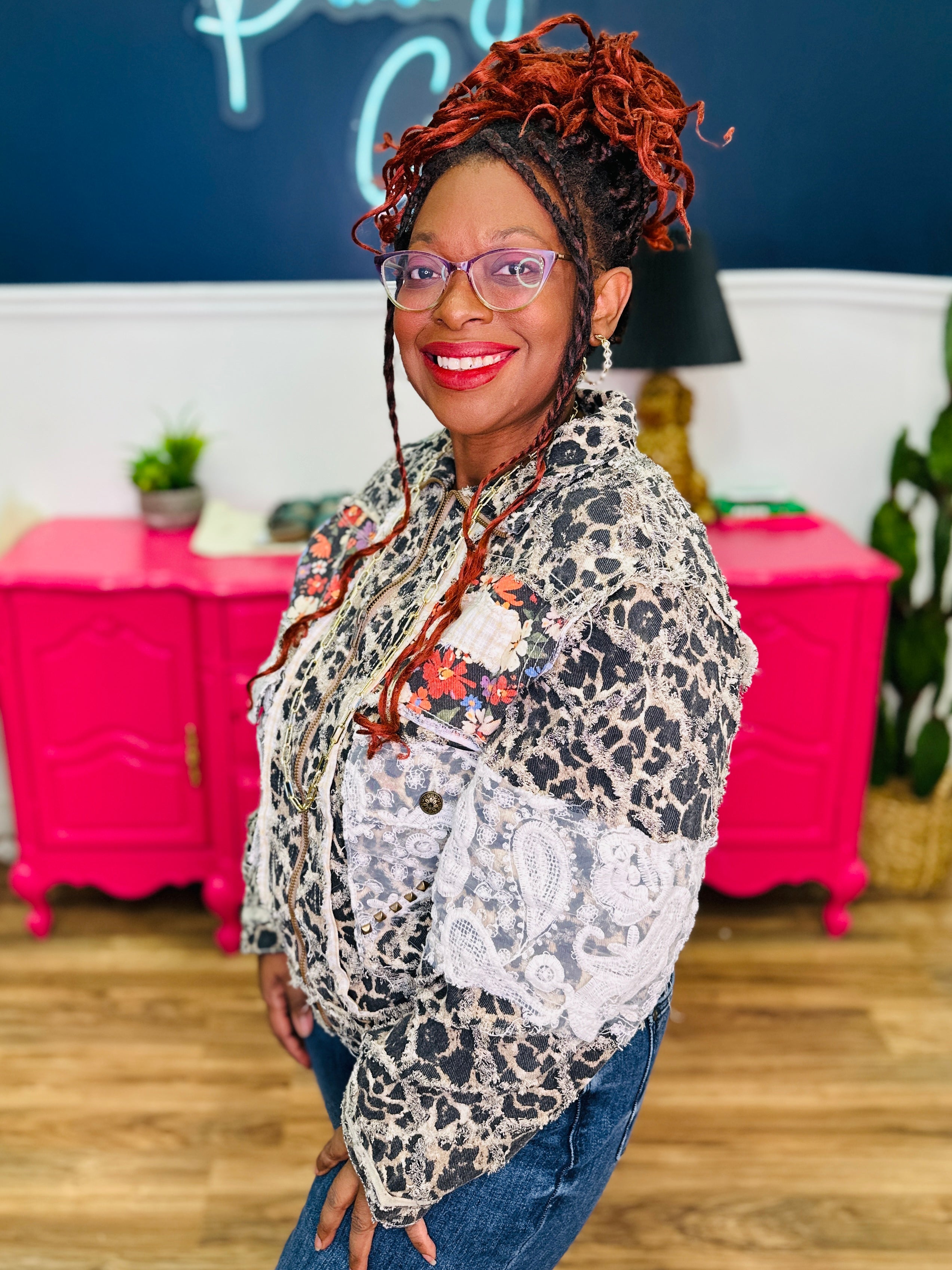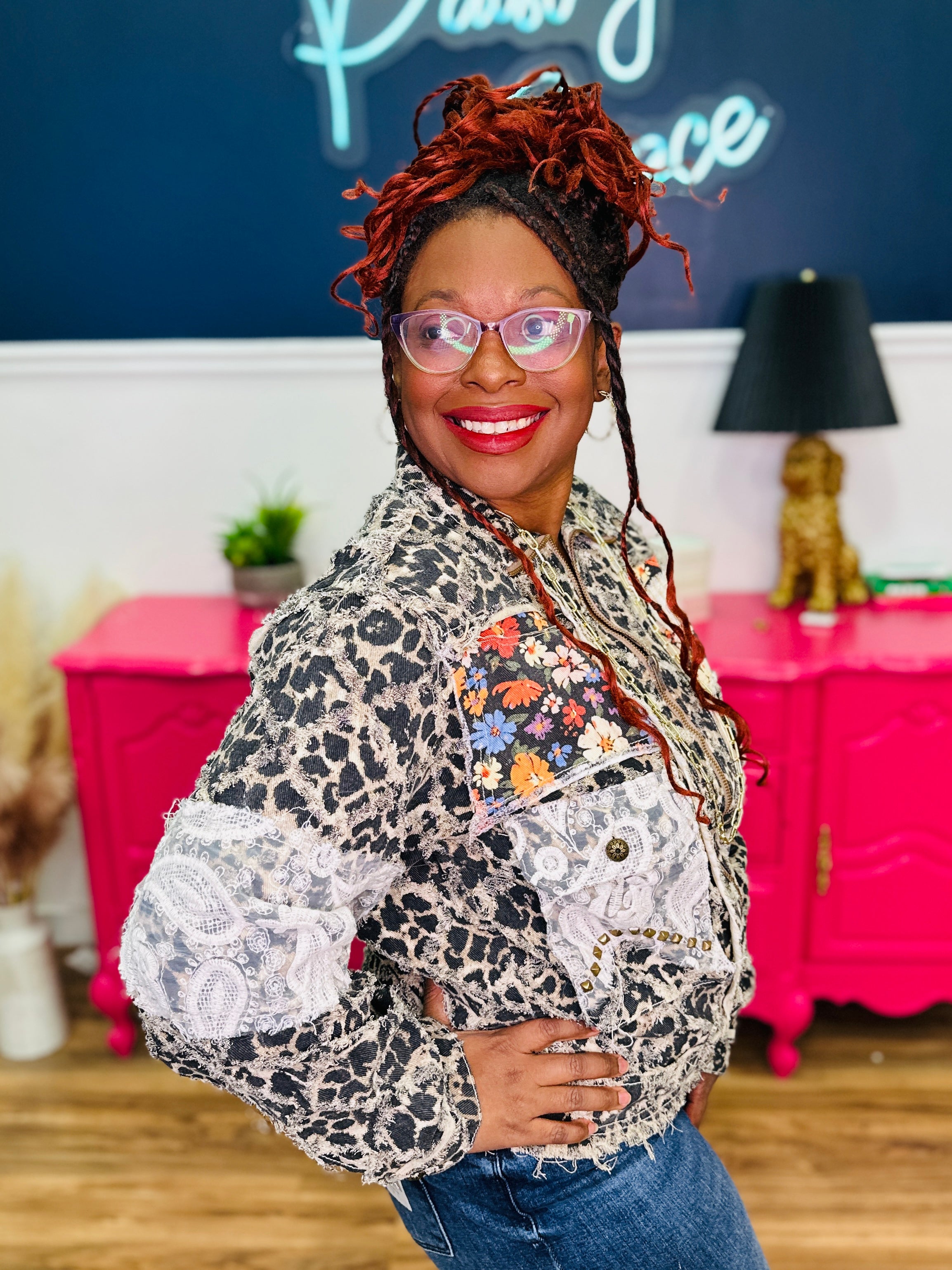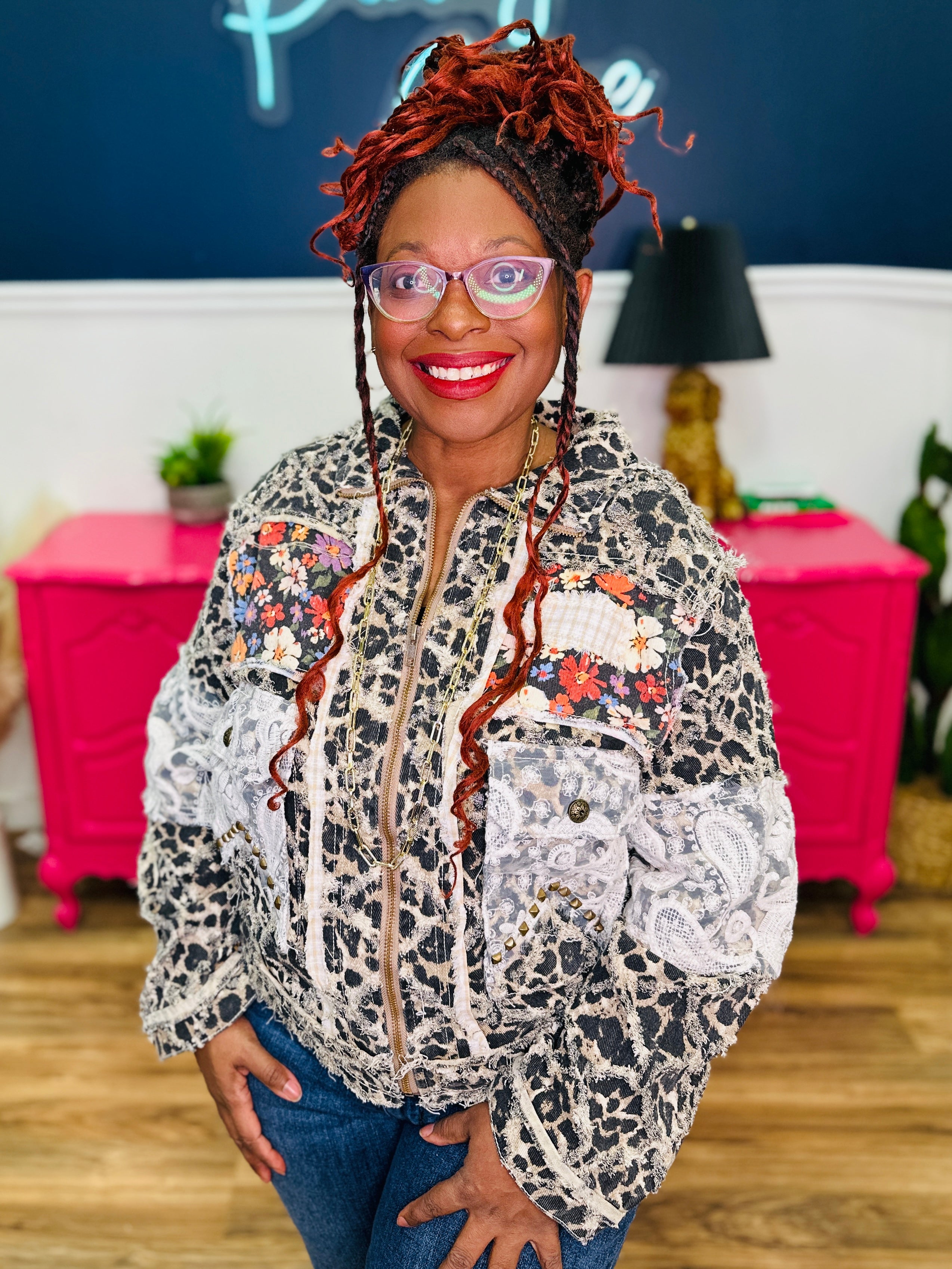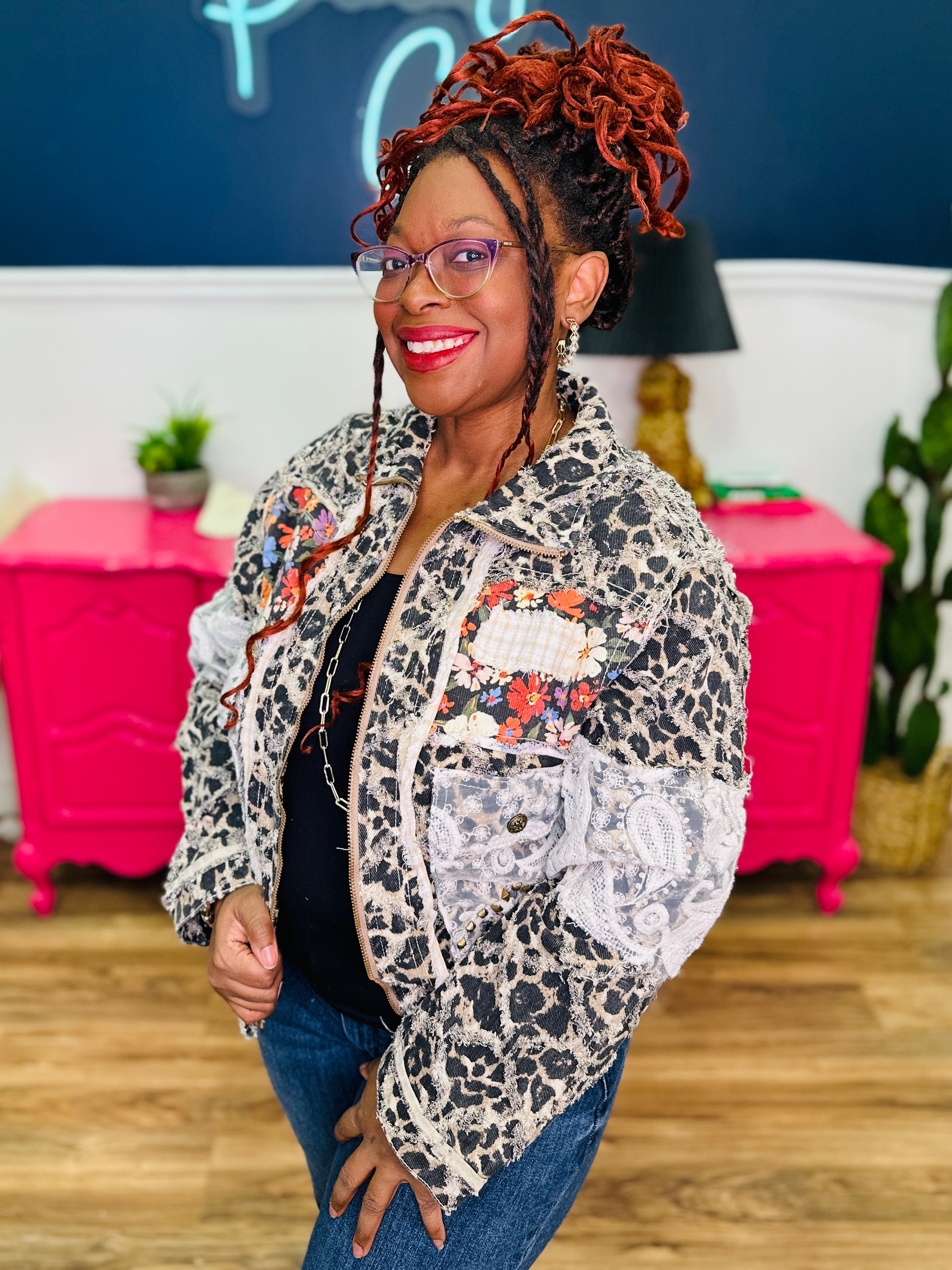 - Leopard Print, Ivory Lace & Multicolored Florals