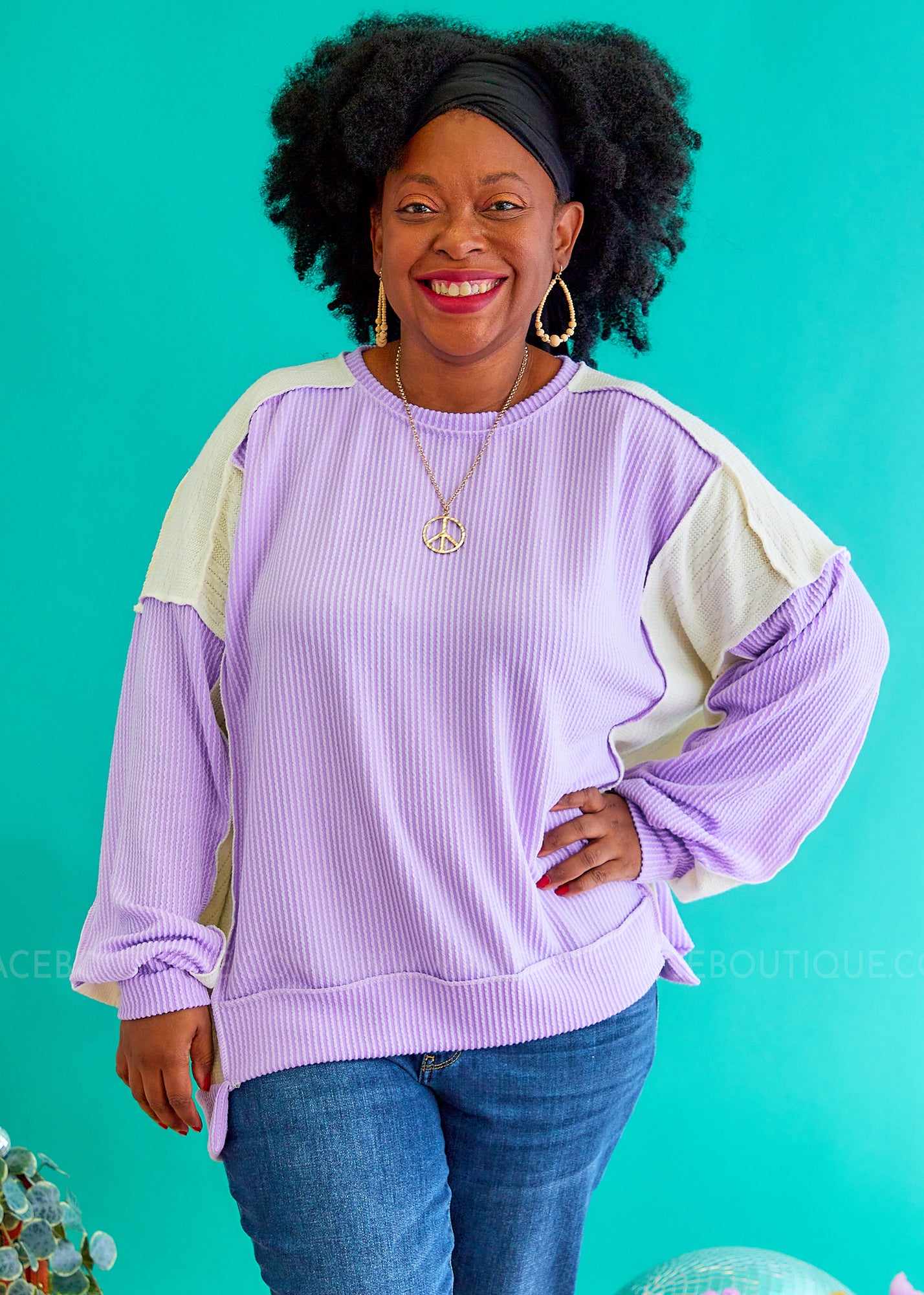 - Ribbed Knit w/ Contrast Cable Knit | Has Stretch | Relaxed Fit