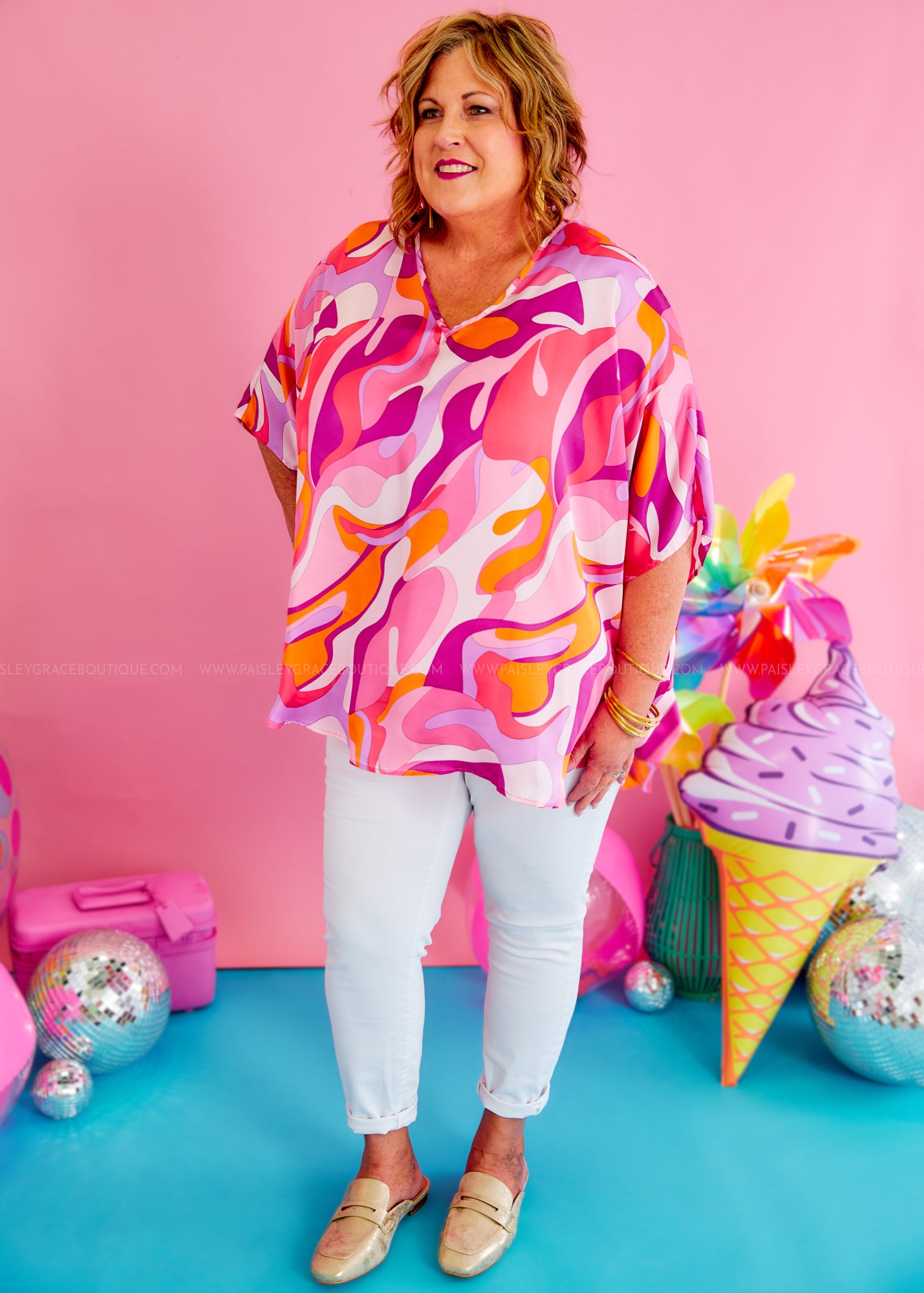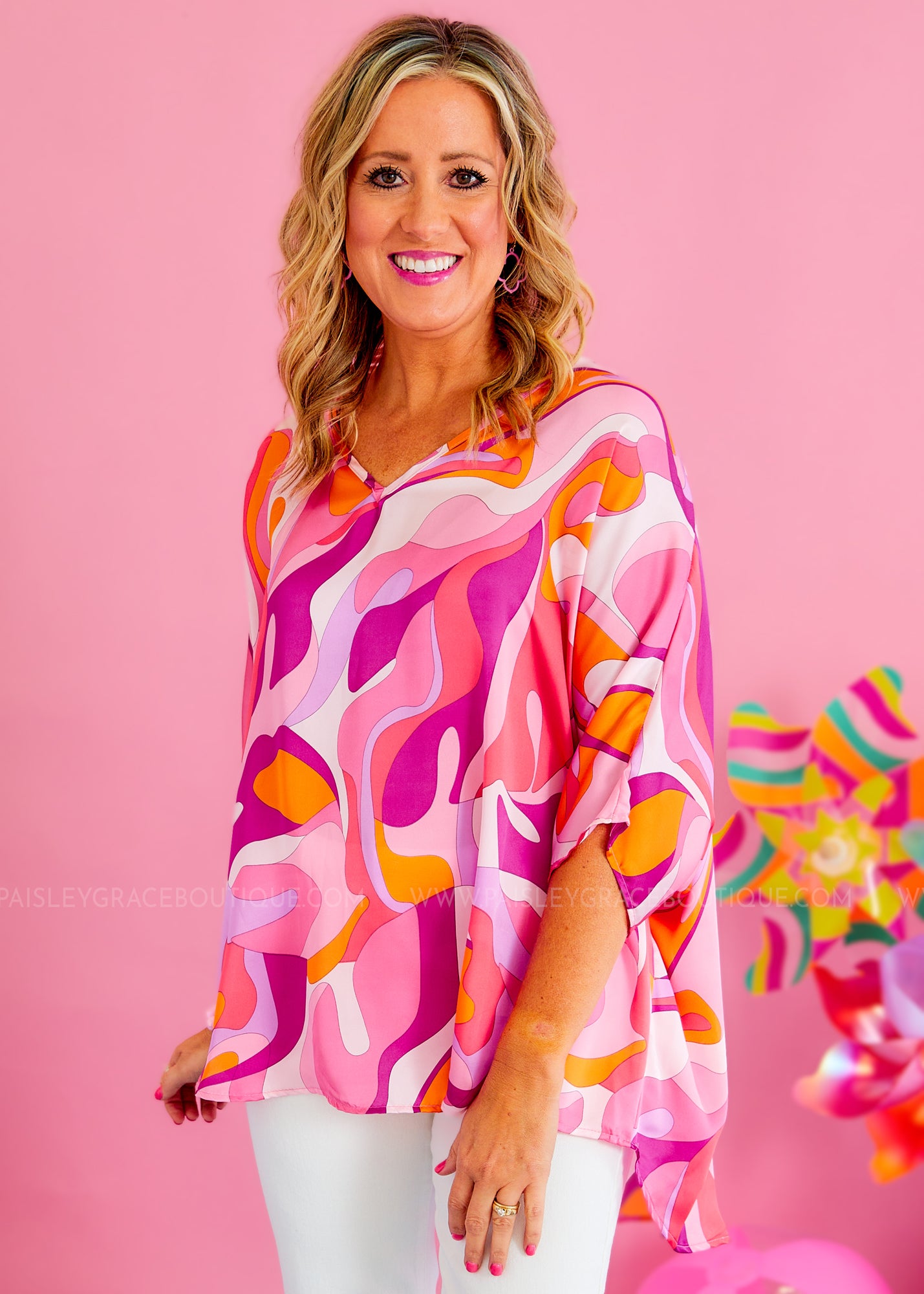 • V-Neckline | Mid-length Dolman Sleeves | Curved Hemline