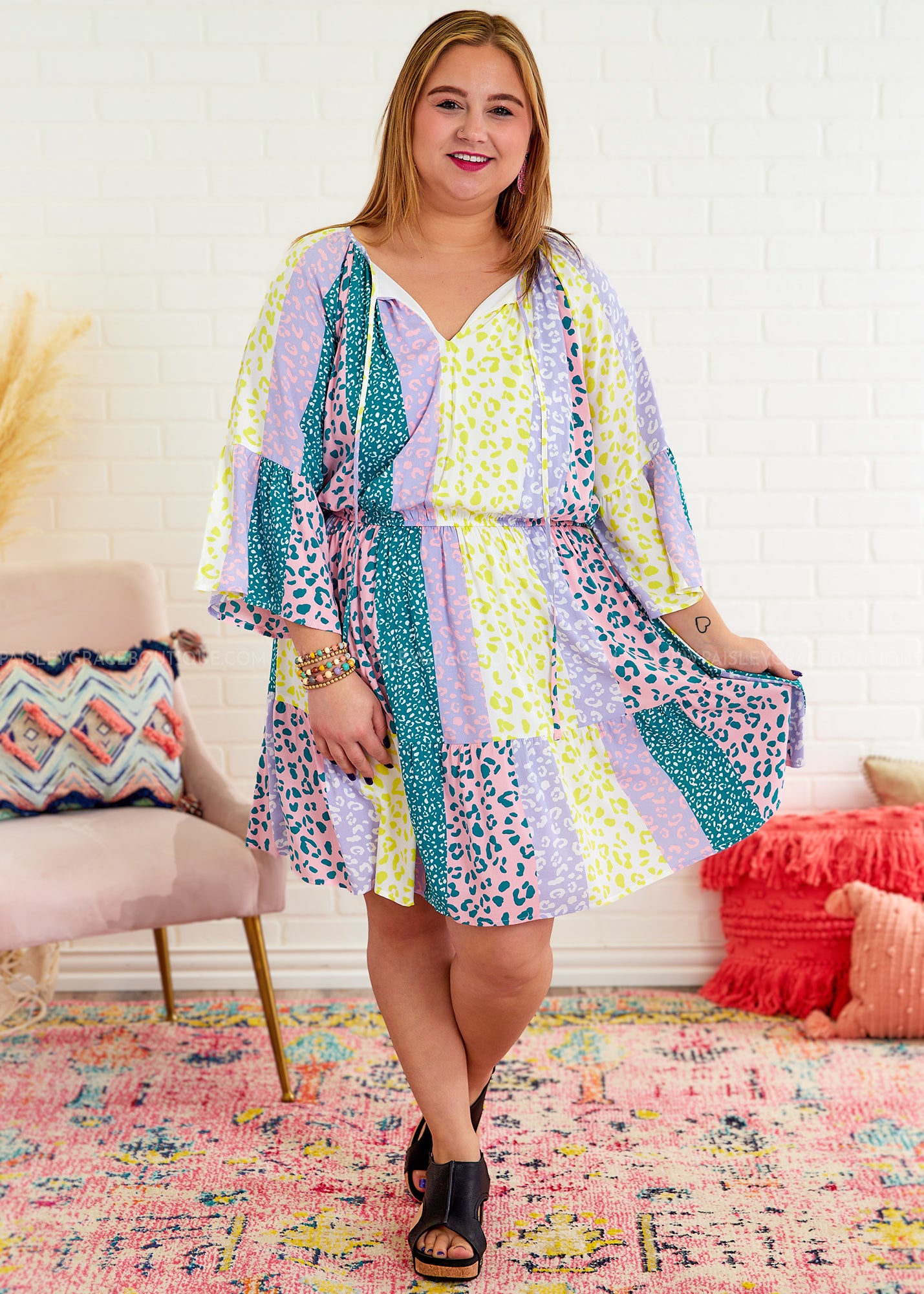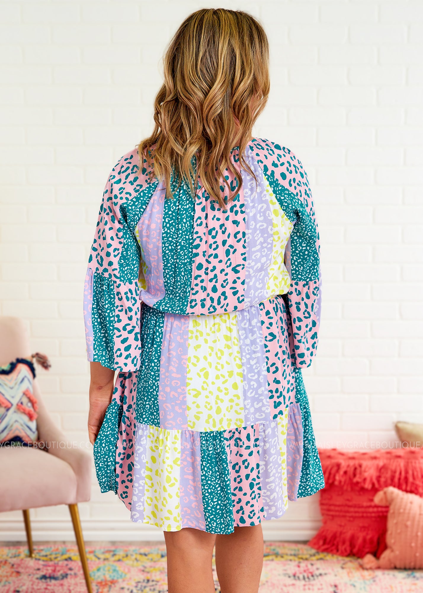 • Teal, Purple, Yellow and Pink Patchwork Animal Print