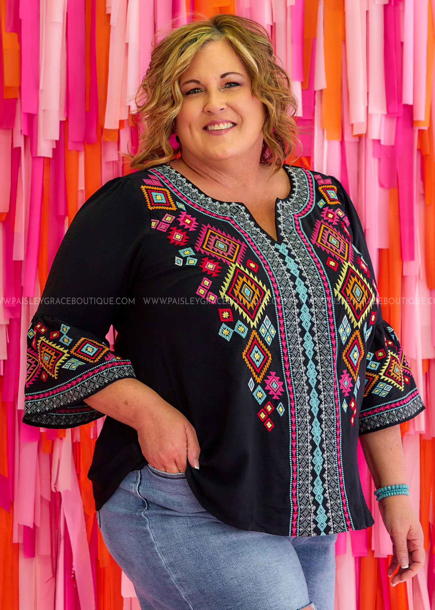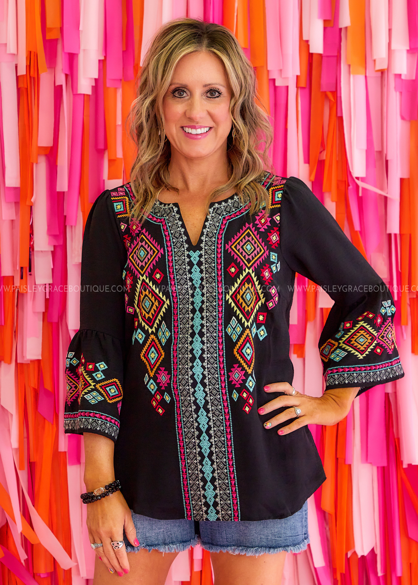 - Black w/ Turquoise, Red, Pink & Grey Embroidery