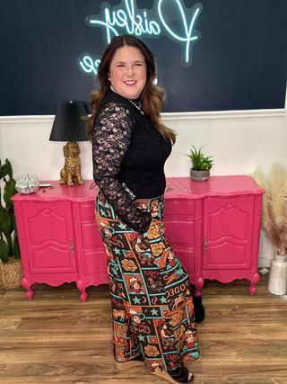Cowboy Print Elastic Waist Pants