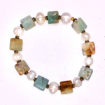 Square Amazonite/Freshweater Pearl Stretch Bracelet