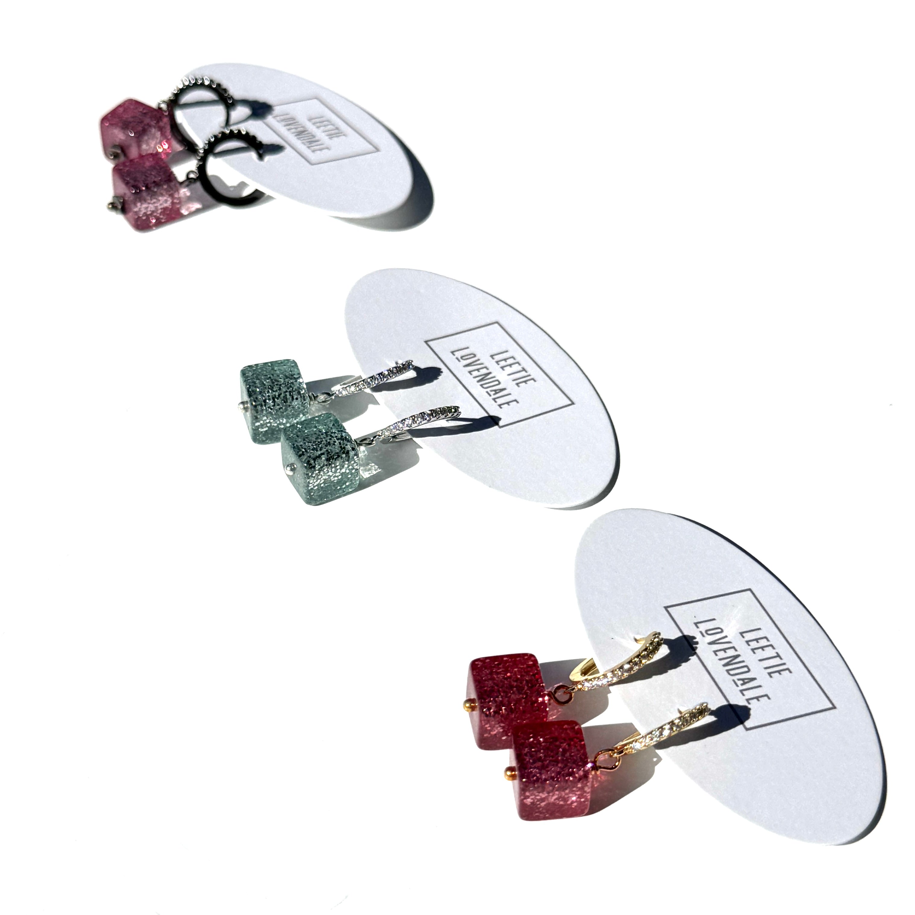 Shimmering with retro glamour, the GlitterBox Huggie Drop Earrings pair glitter-infused lucite cubes with CZ-studded huggie hoops for a look that’s both playful and elevated. These rare vintage beads catch the light beautifully — a mix of disco sparkle and minimalist chic that works from daytime polish to evening glow.