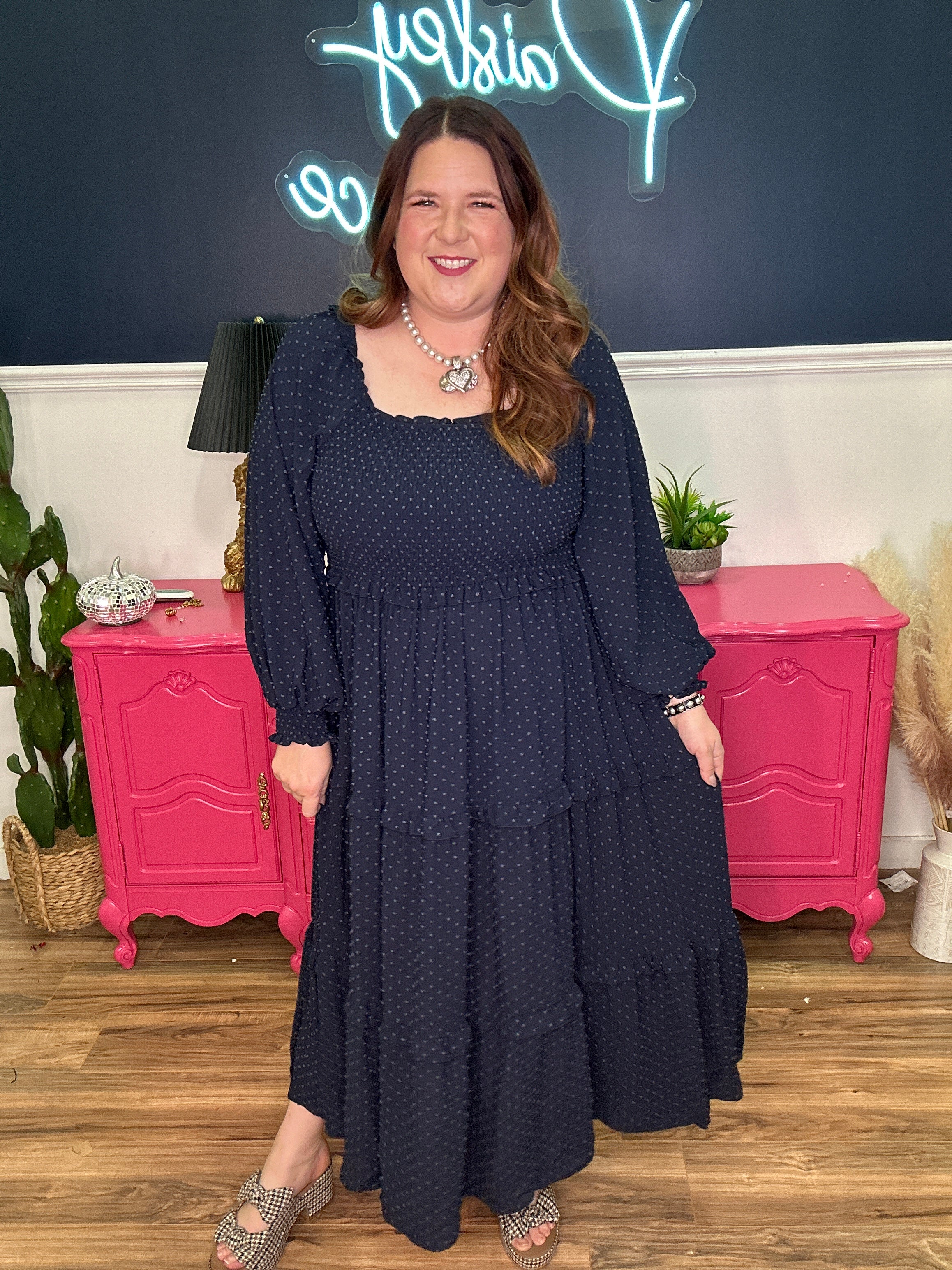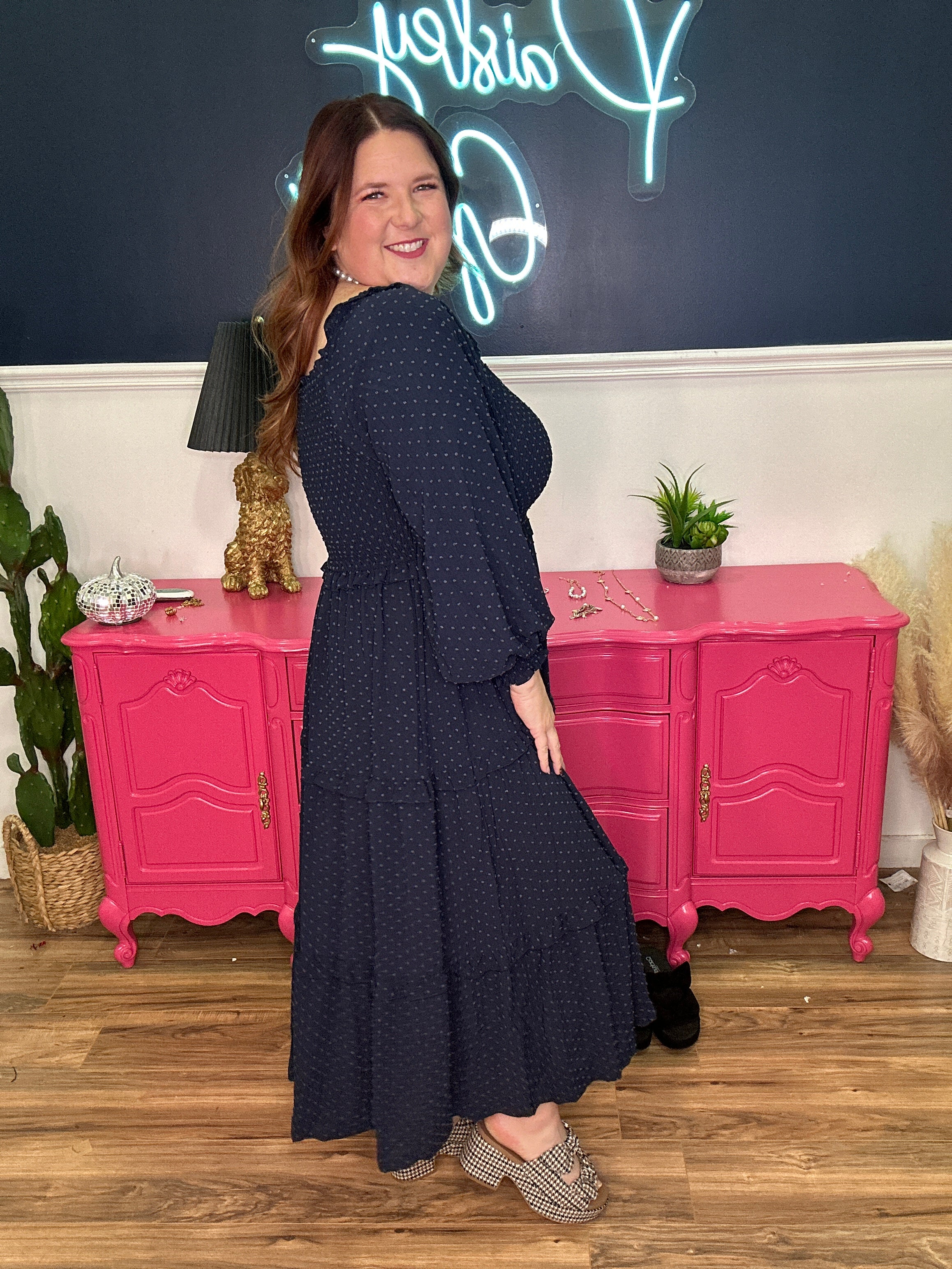 • Square Neckline | Full-length Puff Sleeves | Tiered Hemline