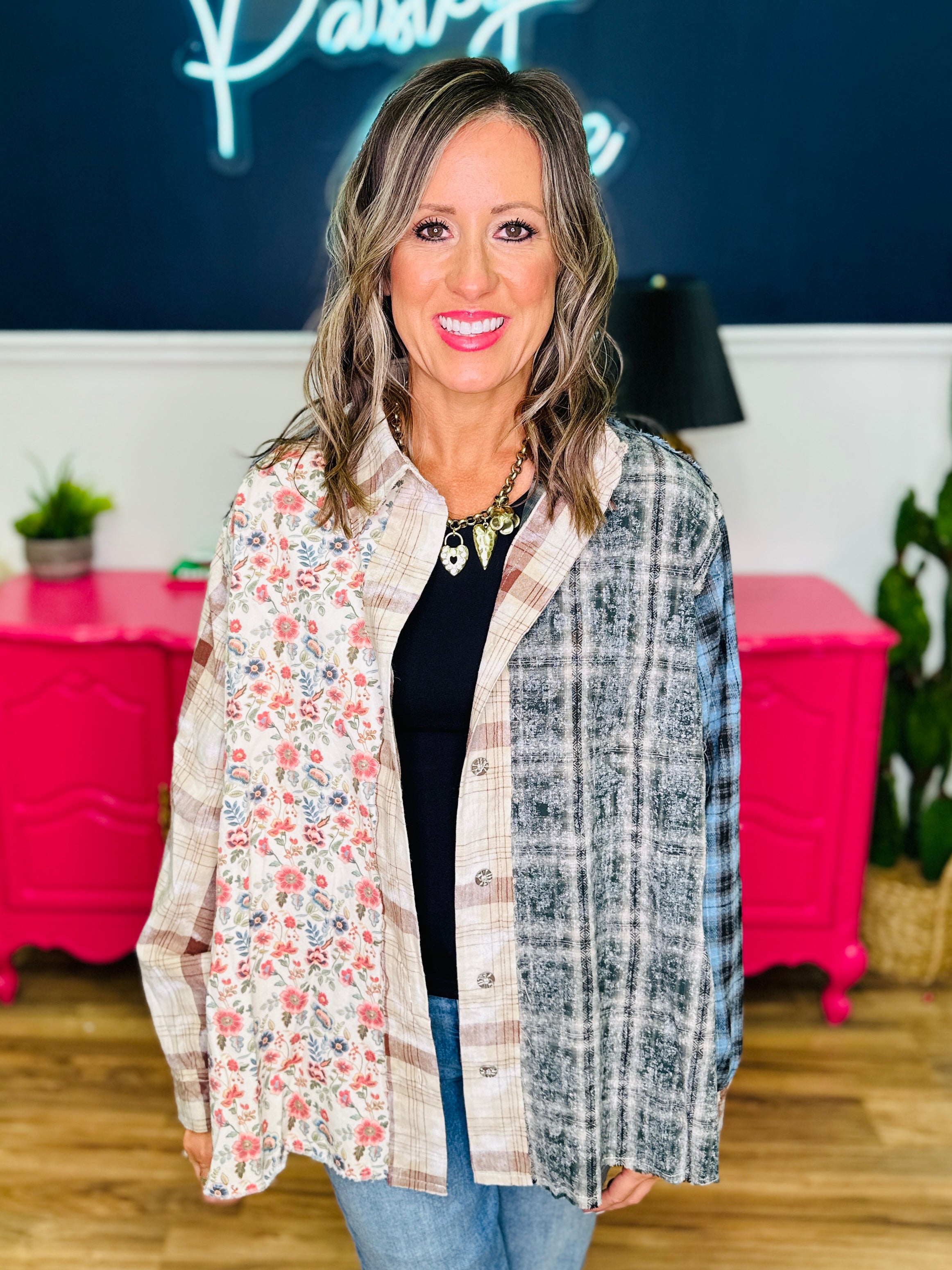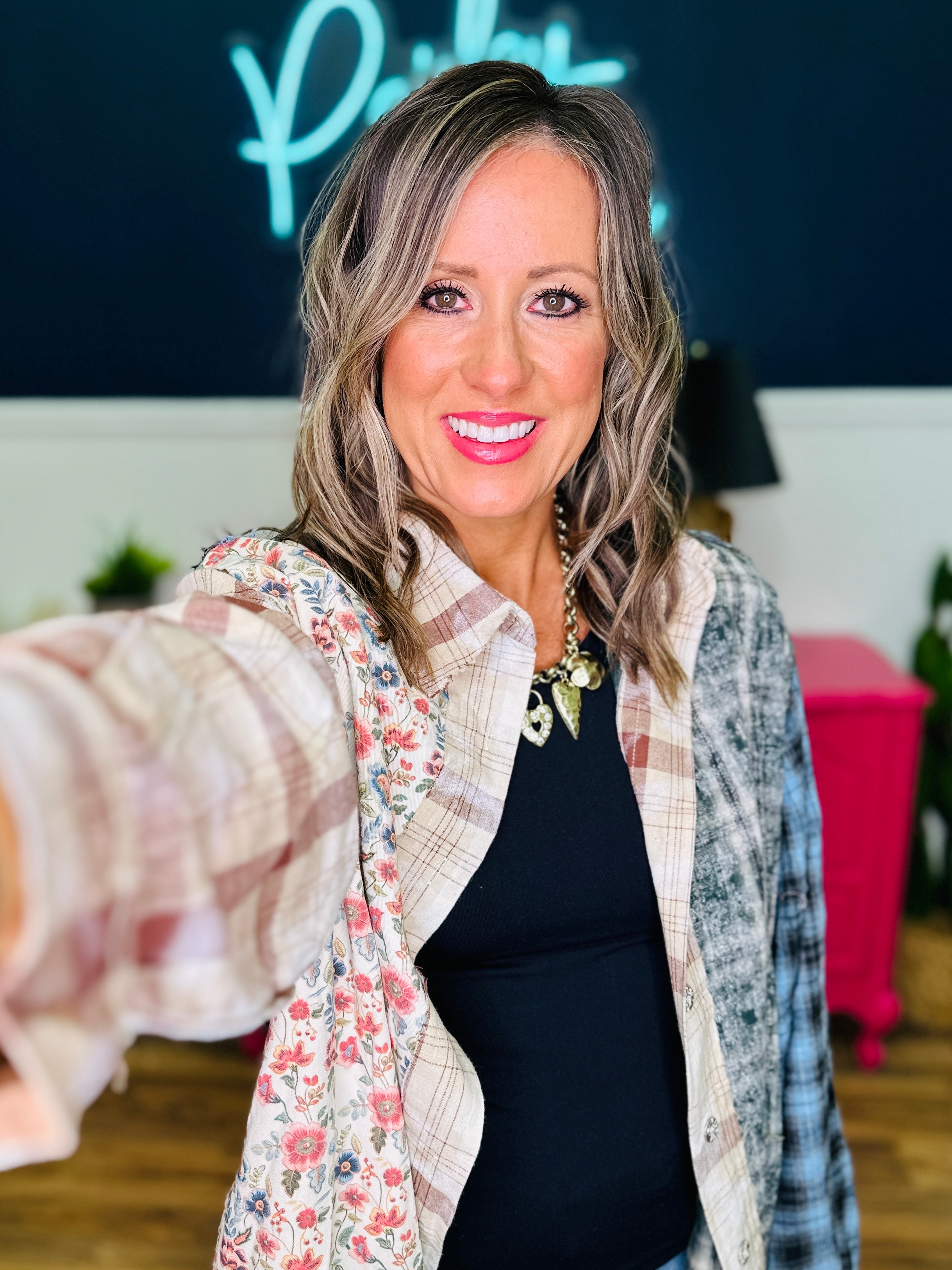 - Beige/Pink Florals, Blue, Green & Taupe Plaid