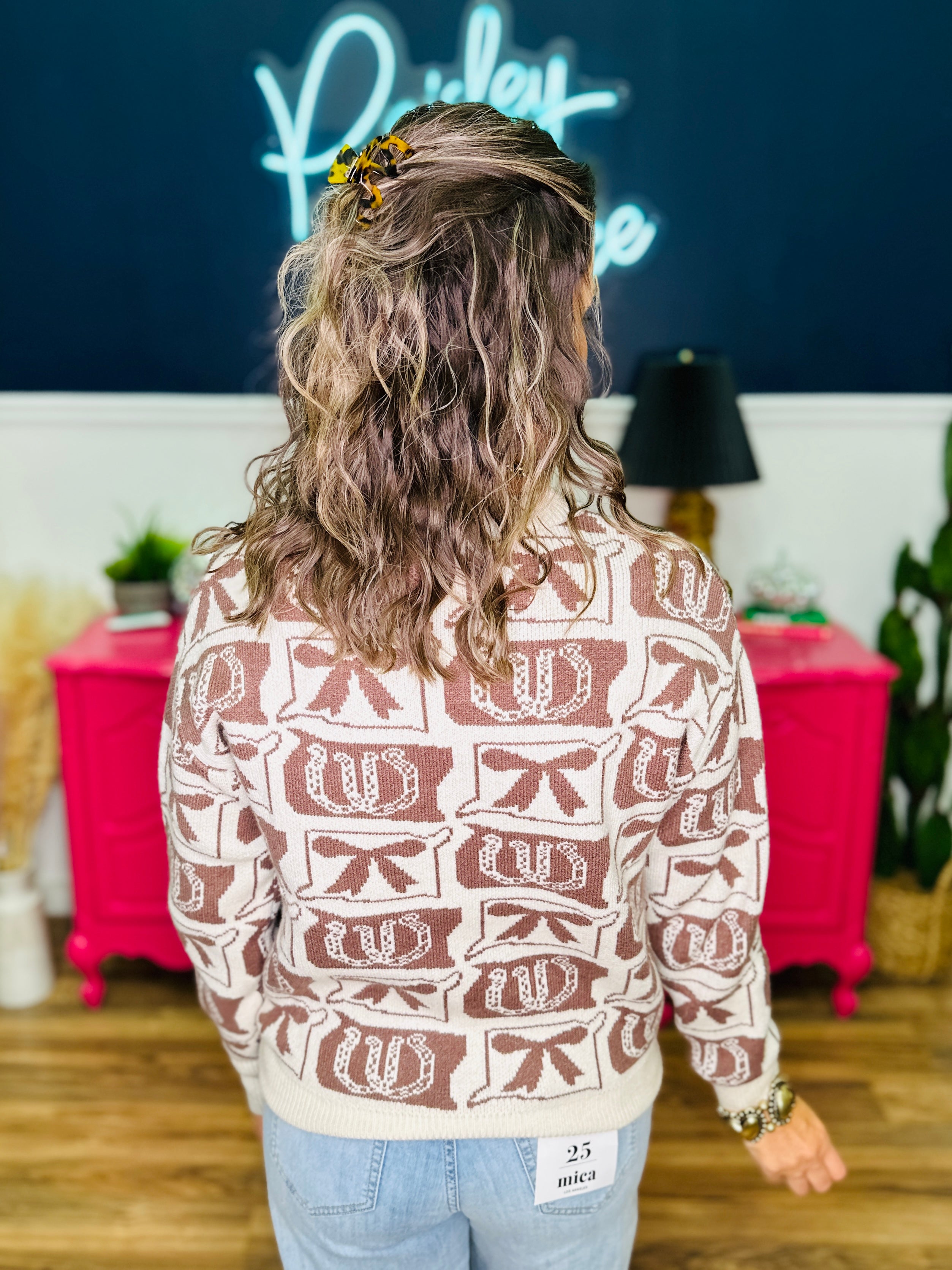 • Brown & Beige Horseshoe & Ribbon Pattern