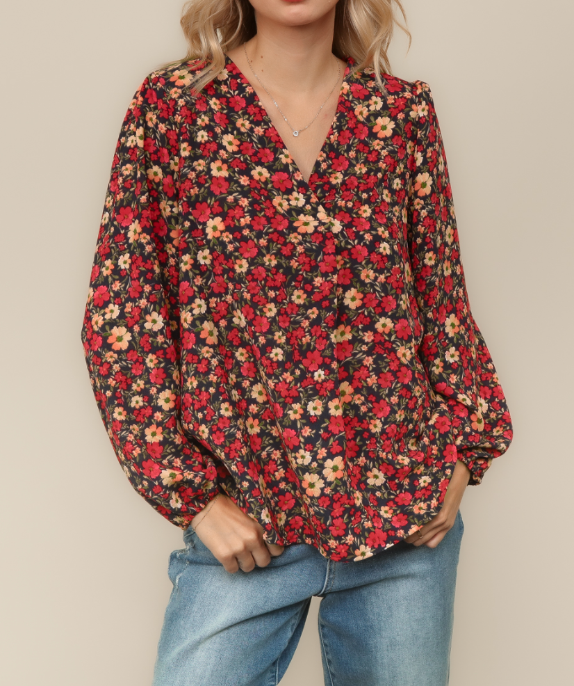 DEAL - V-Neck Long Sleeve Top - Charcoal