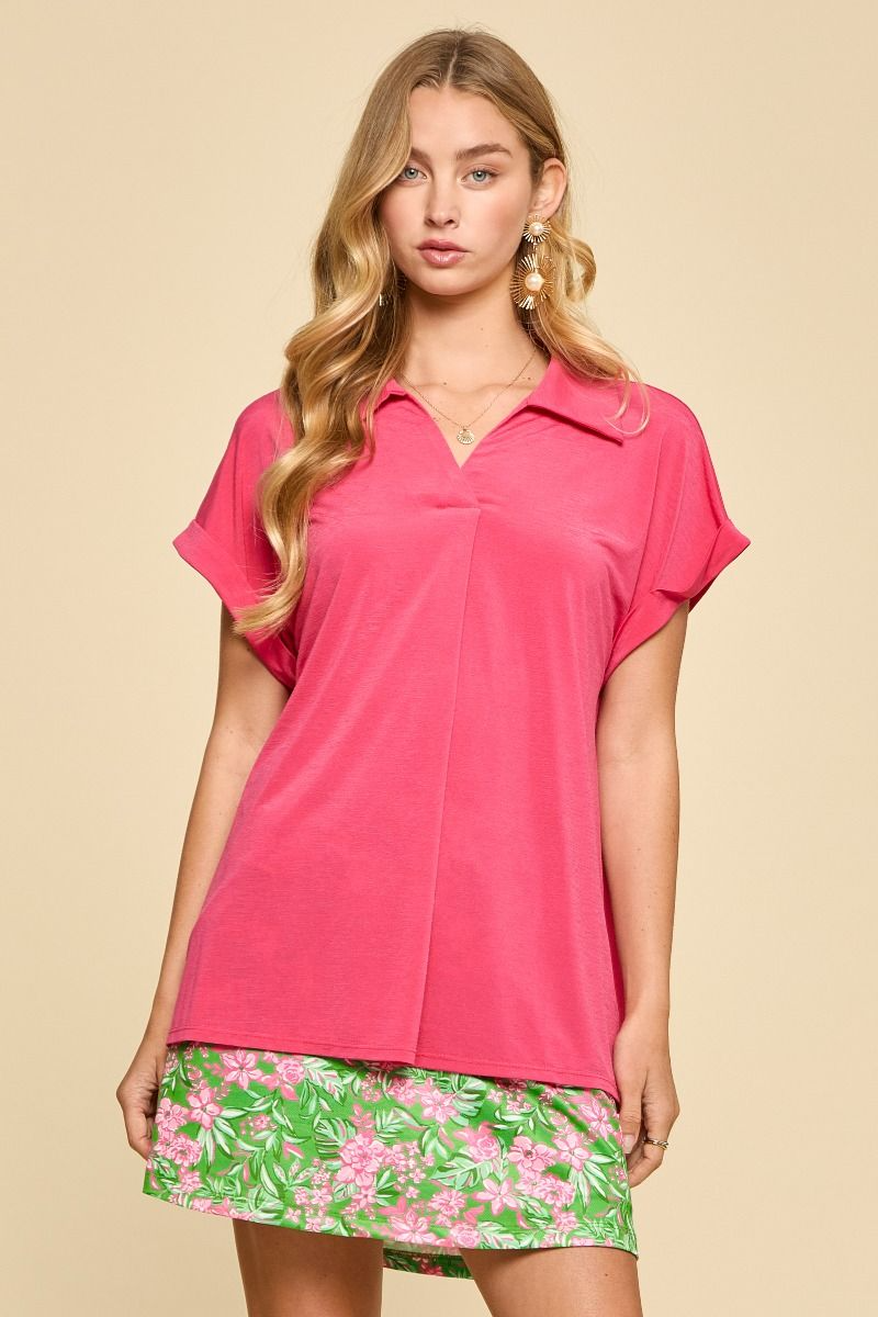Solid Short Sleeve Sea You Soon Top - Fuchsia