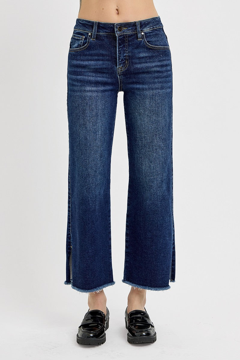 Mid Rise Crop Wide Side Slit Jeans by Risen