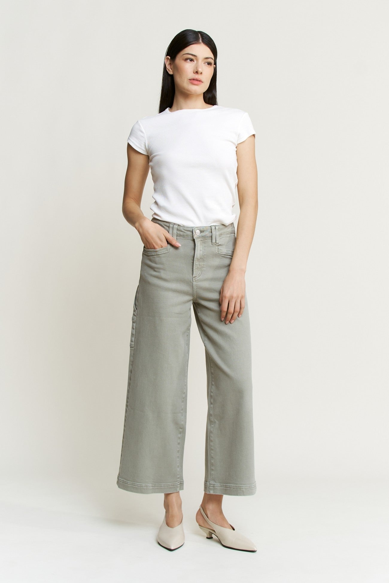 Wide Cropped Utility Bottoms By Mica - Summer Green