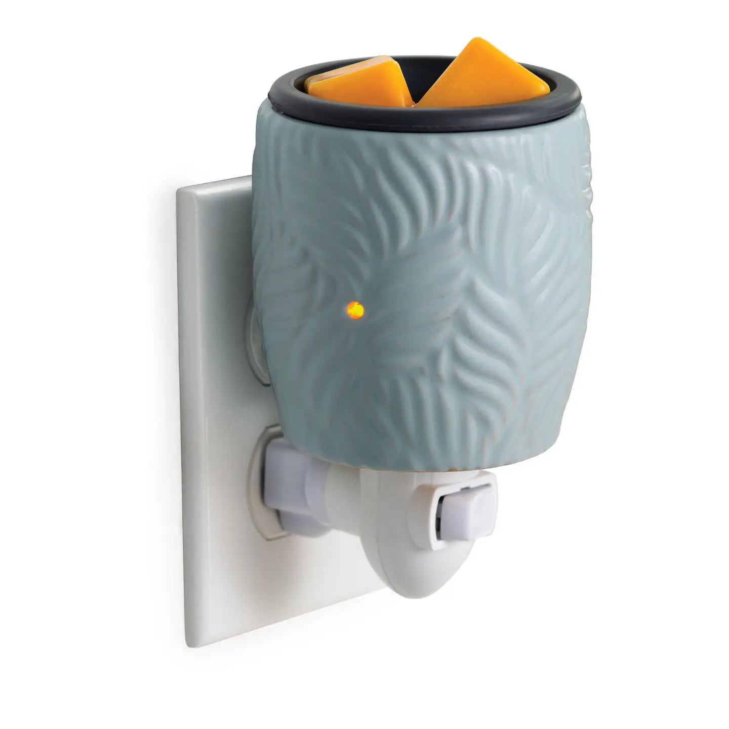 This serene warmer brings coastal vibes to any room with its soft blue finish and elegant debossed palm leaves. The removable charcoal silicone flip dish makes swapping scents a breeze, while the innovative twist-base plug adapts to both vertical and horizontal outlets—perfect for tucking into tight spaces above your counter.