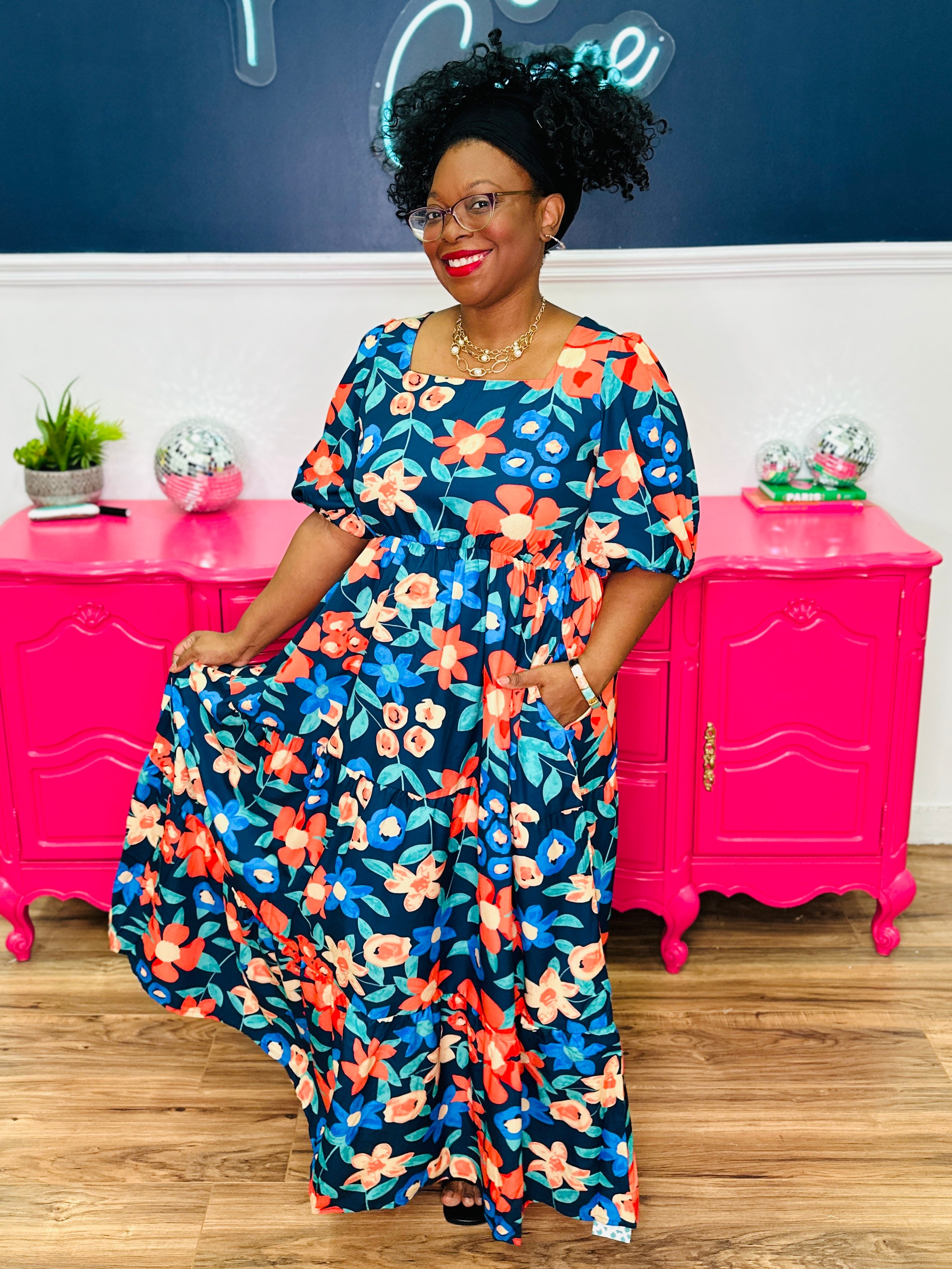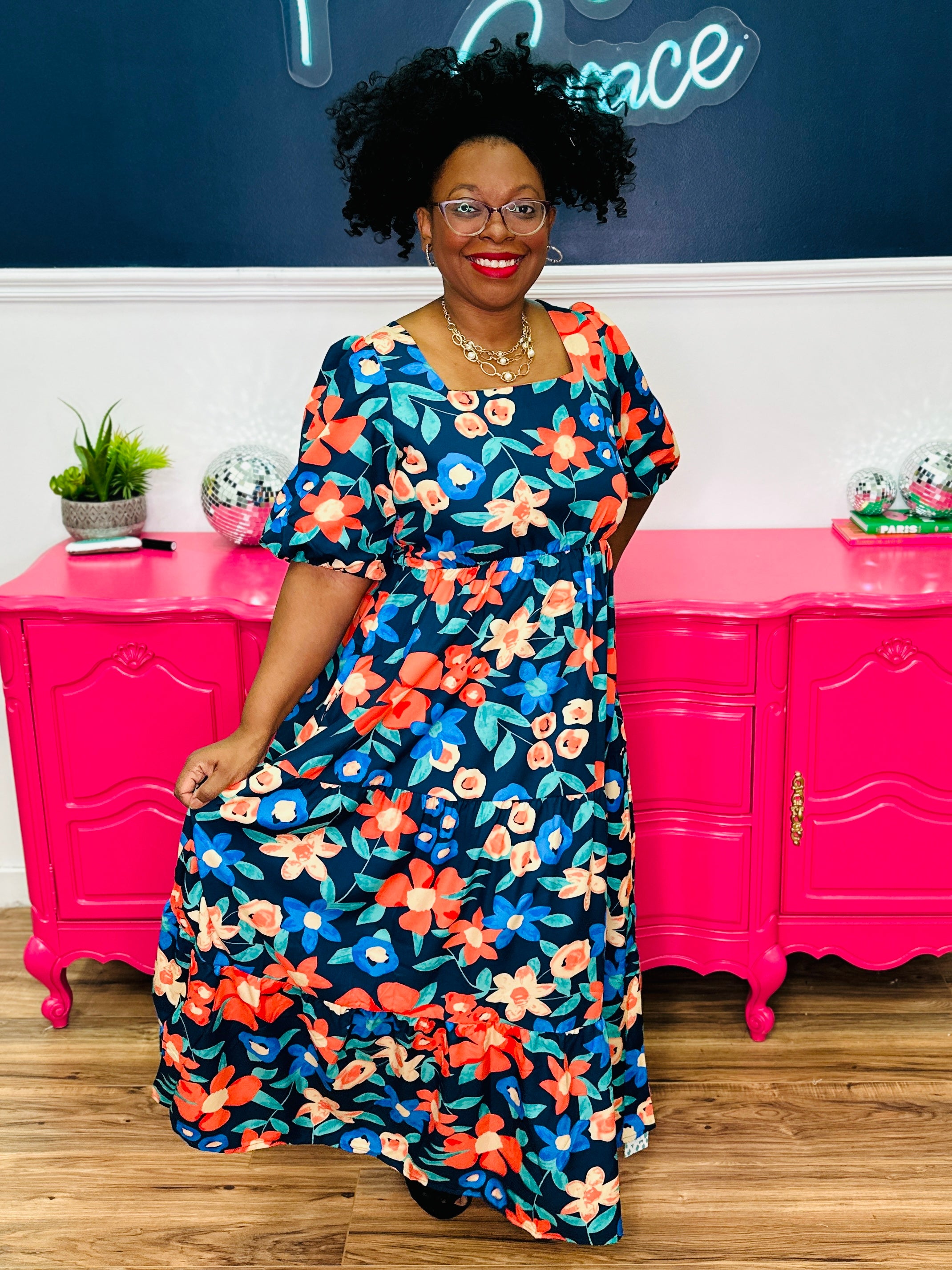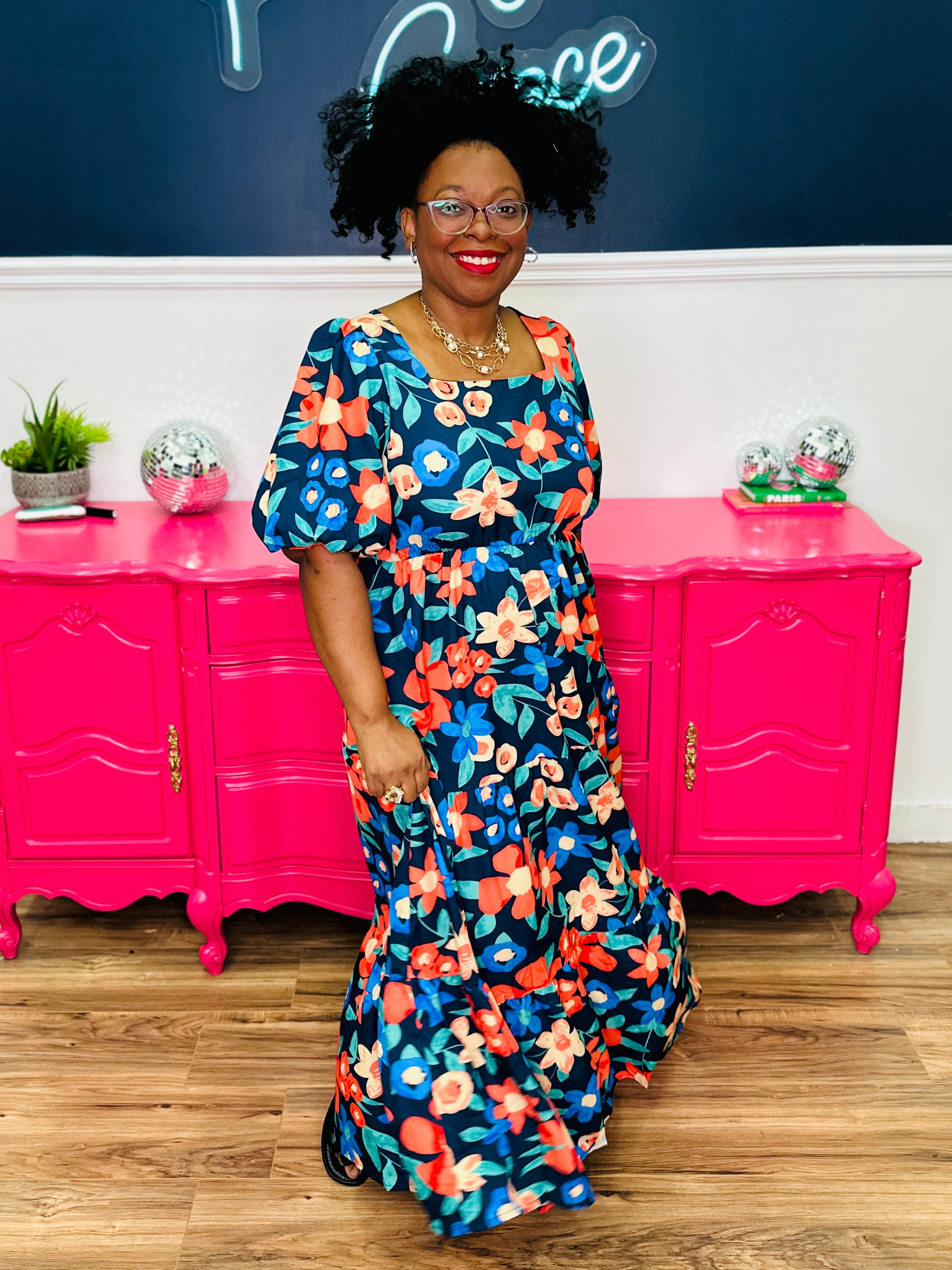 - Square Neckline | Short Puff Sleeves | Tiered Hemline