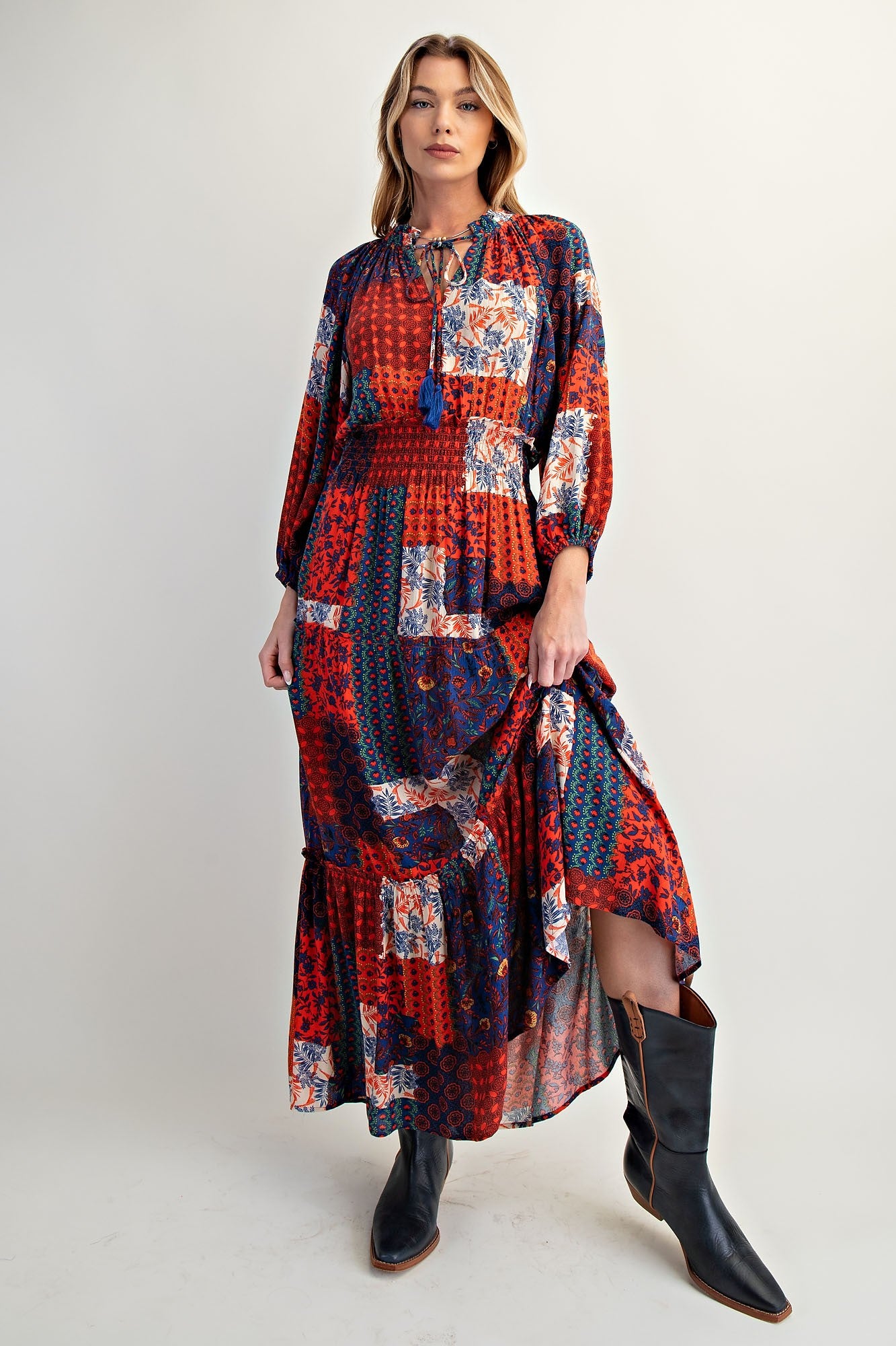 - Keyhole Neckline w/ Drawstrings | Full-length Bubble Sleeves | Tiered Hemline