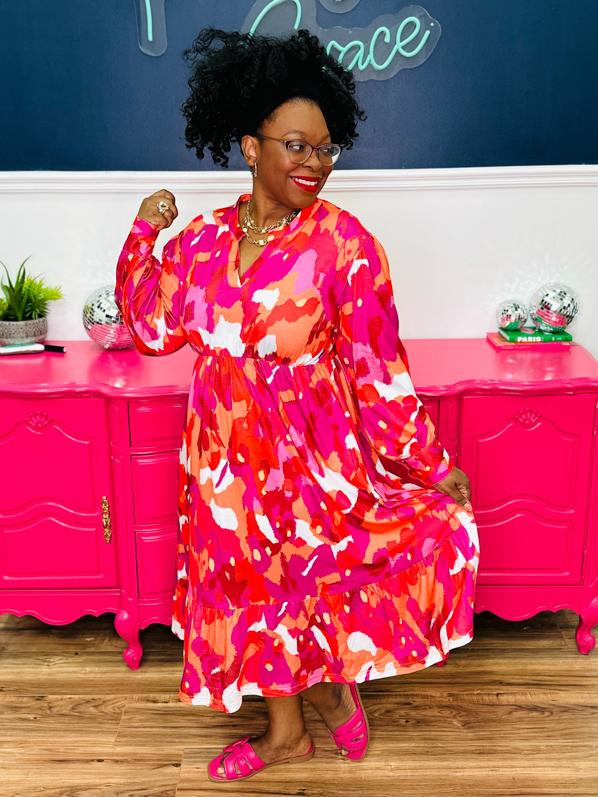 - V-Neckline | Full-length Sleeves | Tiered Hemline