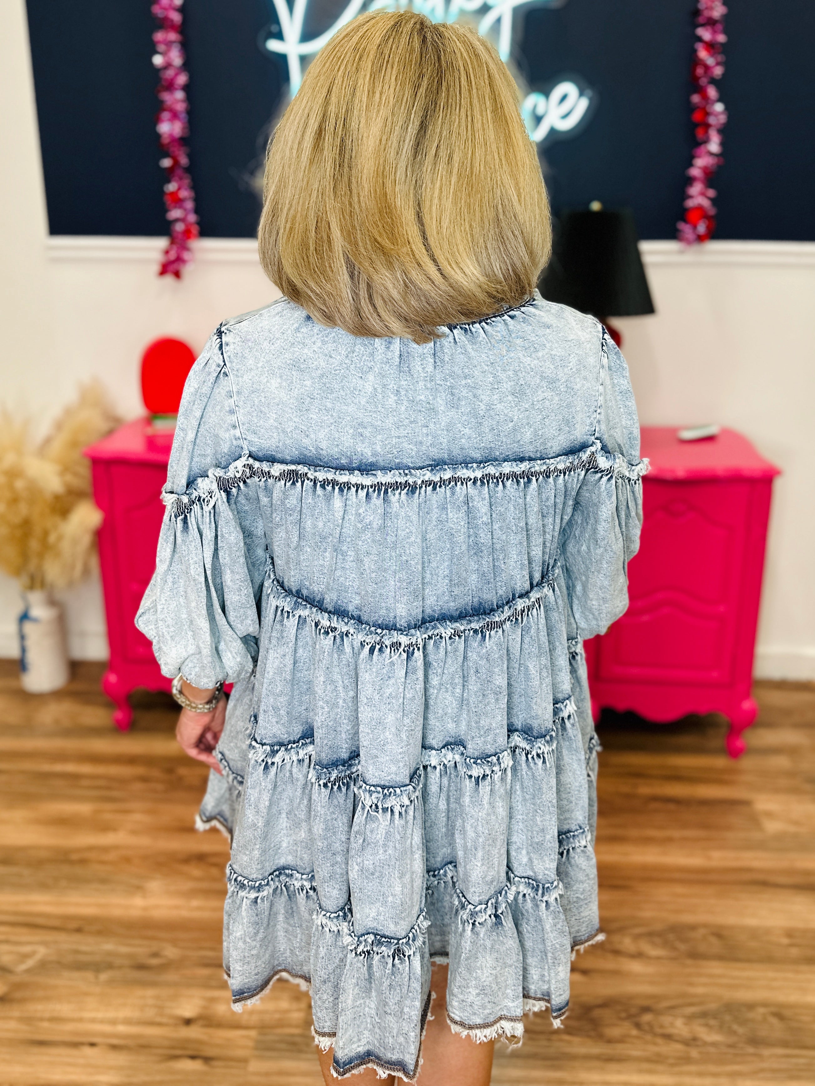 - V-Neckline | 3/4 Bubble Smocked Sleeves | Multi Tiered Hemline