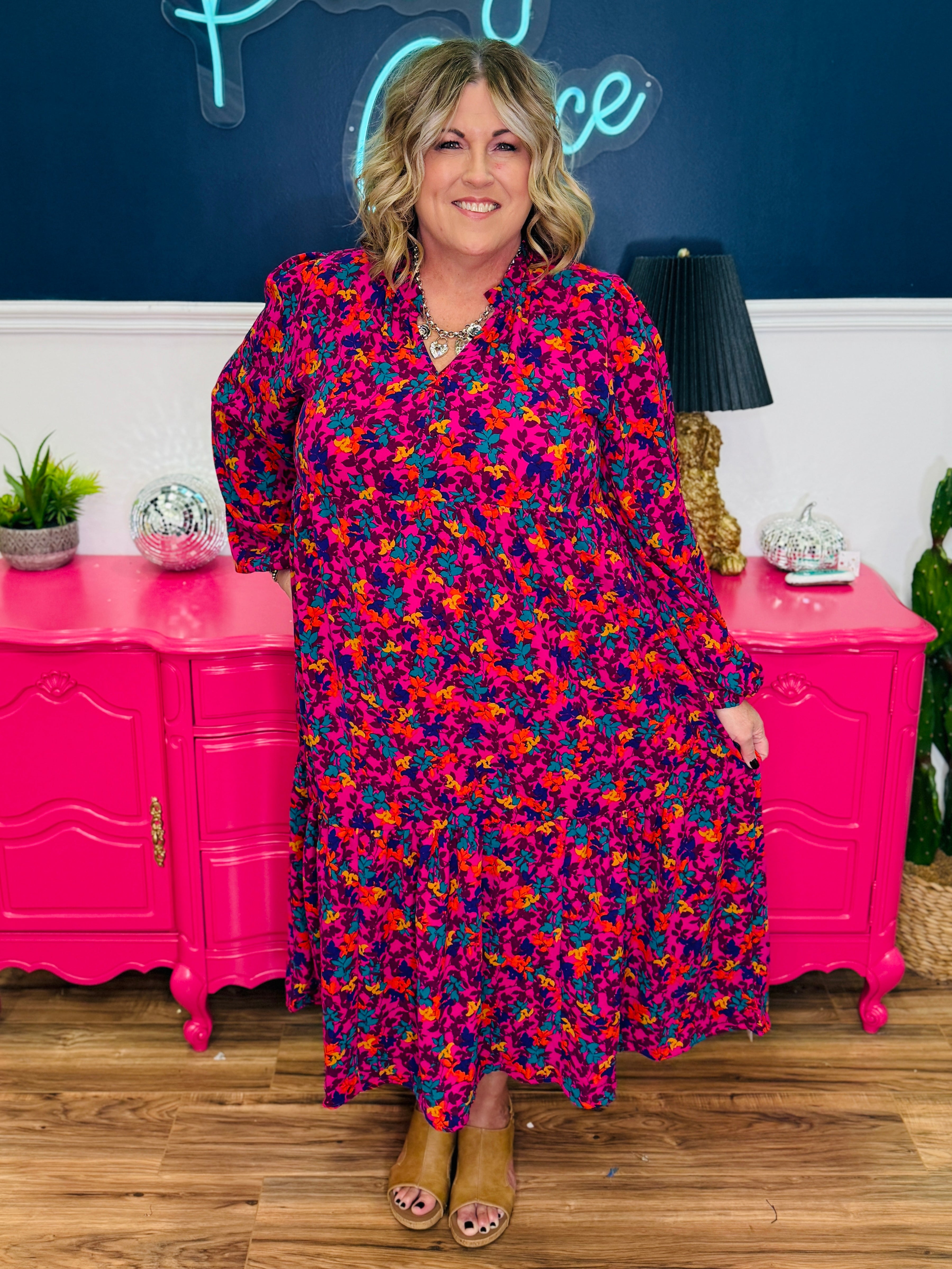 - V-Neckline | Full-length Bubble Sleeves | Tiered Hemline