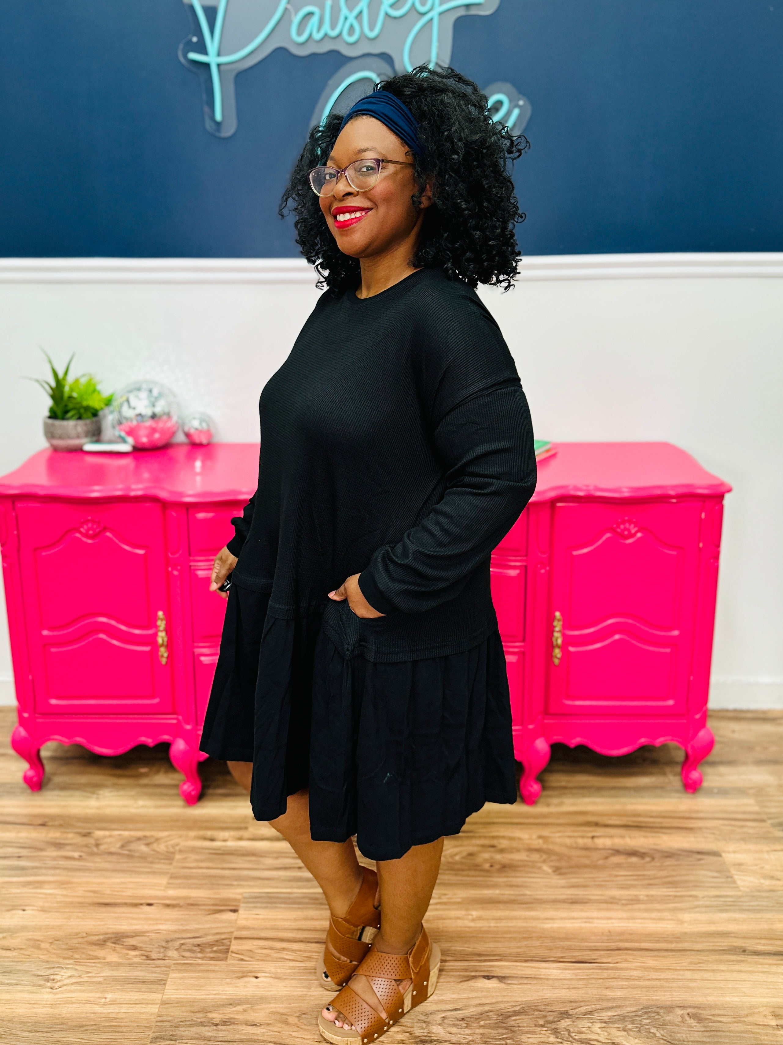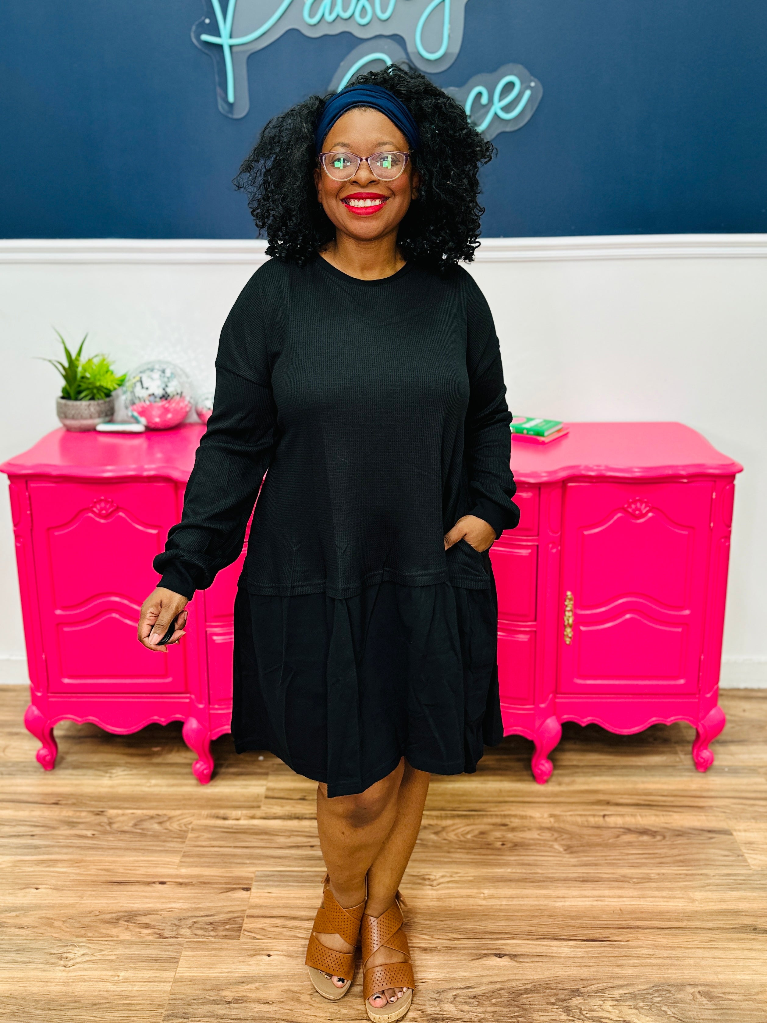 This waffle knit dress is the definition of cozy-cute! With a relaxed fit and high-stretch feel, it’s made for lounging in style or running errands with ease. Just add sneakers or booties and you’re out the door in effortless comfort!