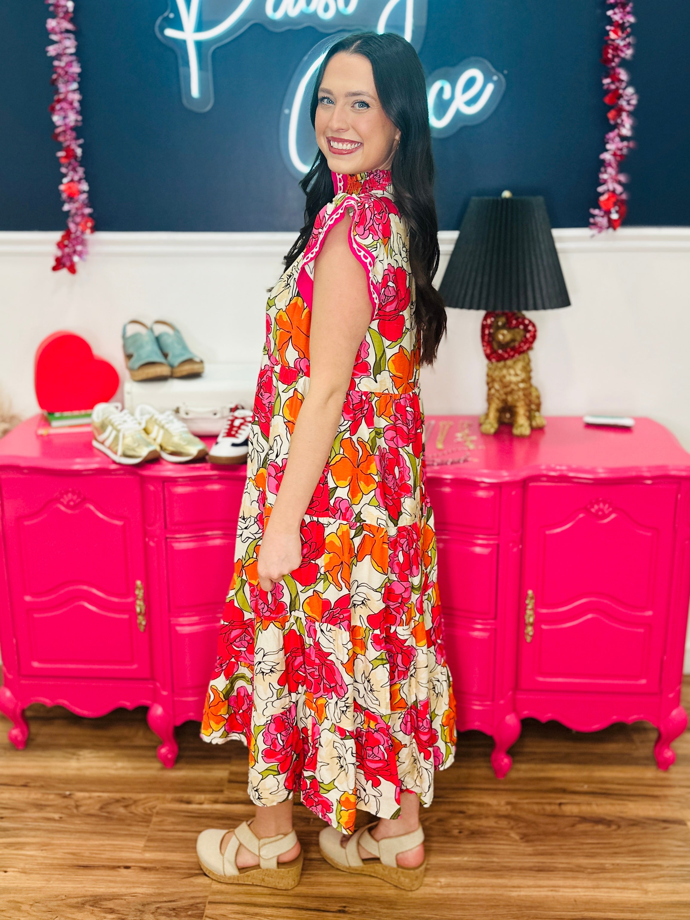 - V-Neckline | Short Flutter Sleeves | Tiered Hemline