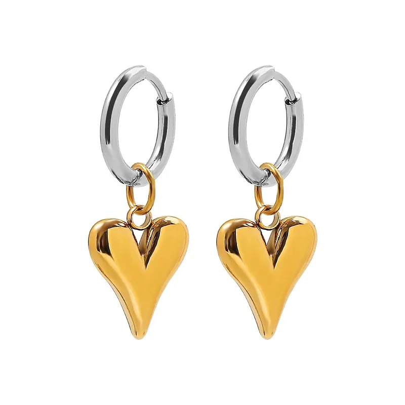 These heart drop hoop earrings bring the perfect mix of sweet and chic. Their sleek, modern design adds just the right touch of shine to any outfit. Wear them solo for a simple statement or pair them with layered hoops for an elevated look.