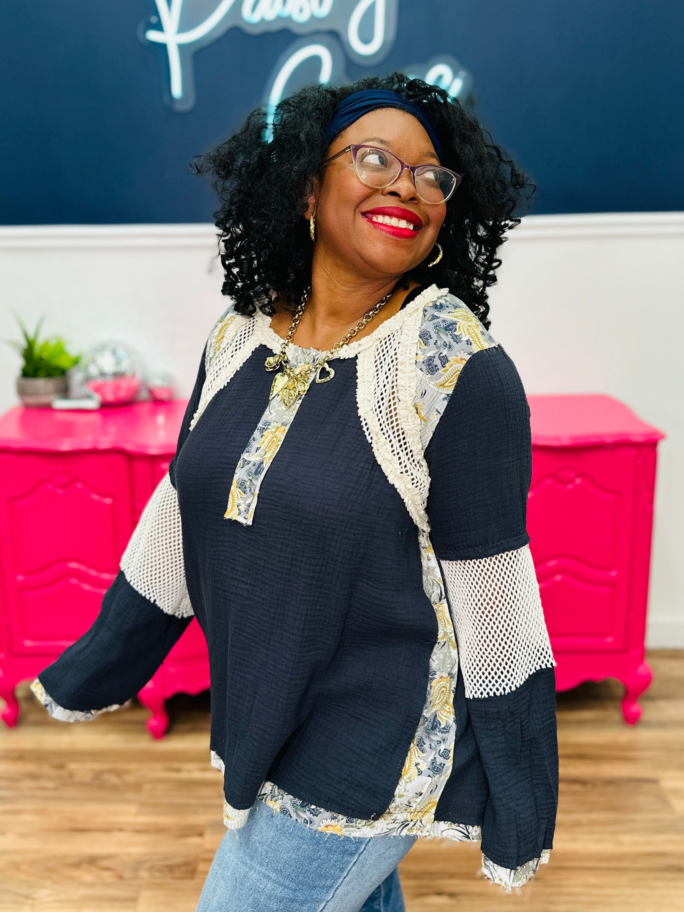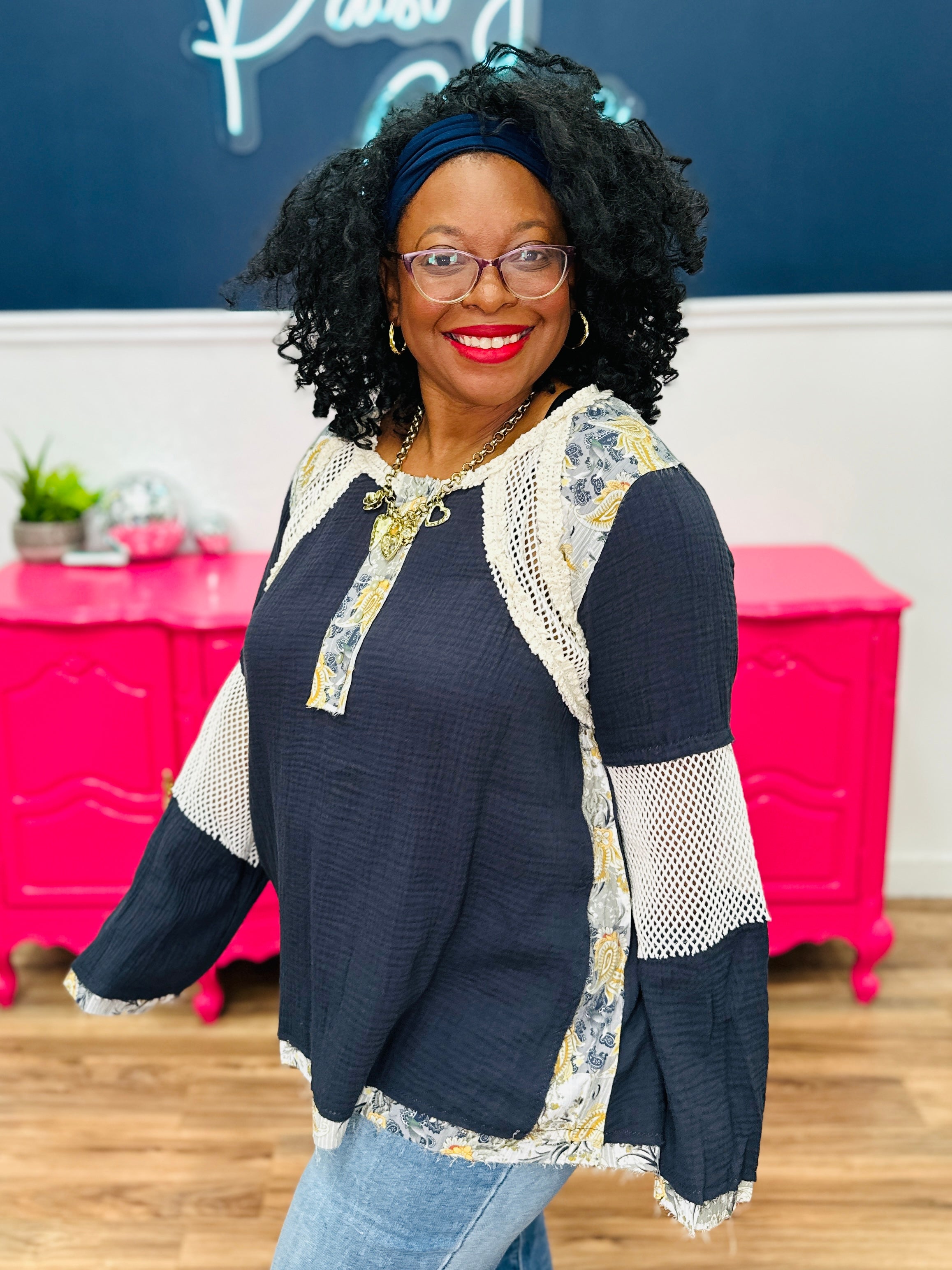 - Model: Holly wears a Small; Shante wears a Medium