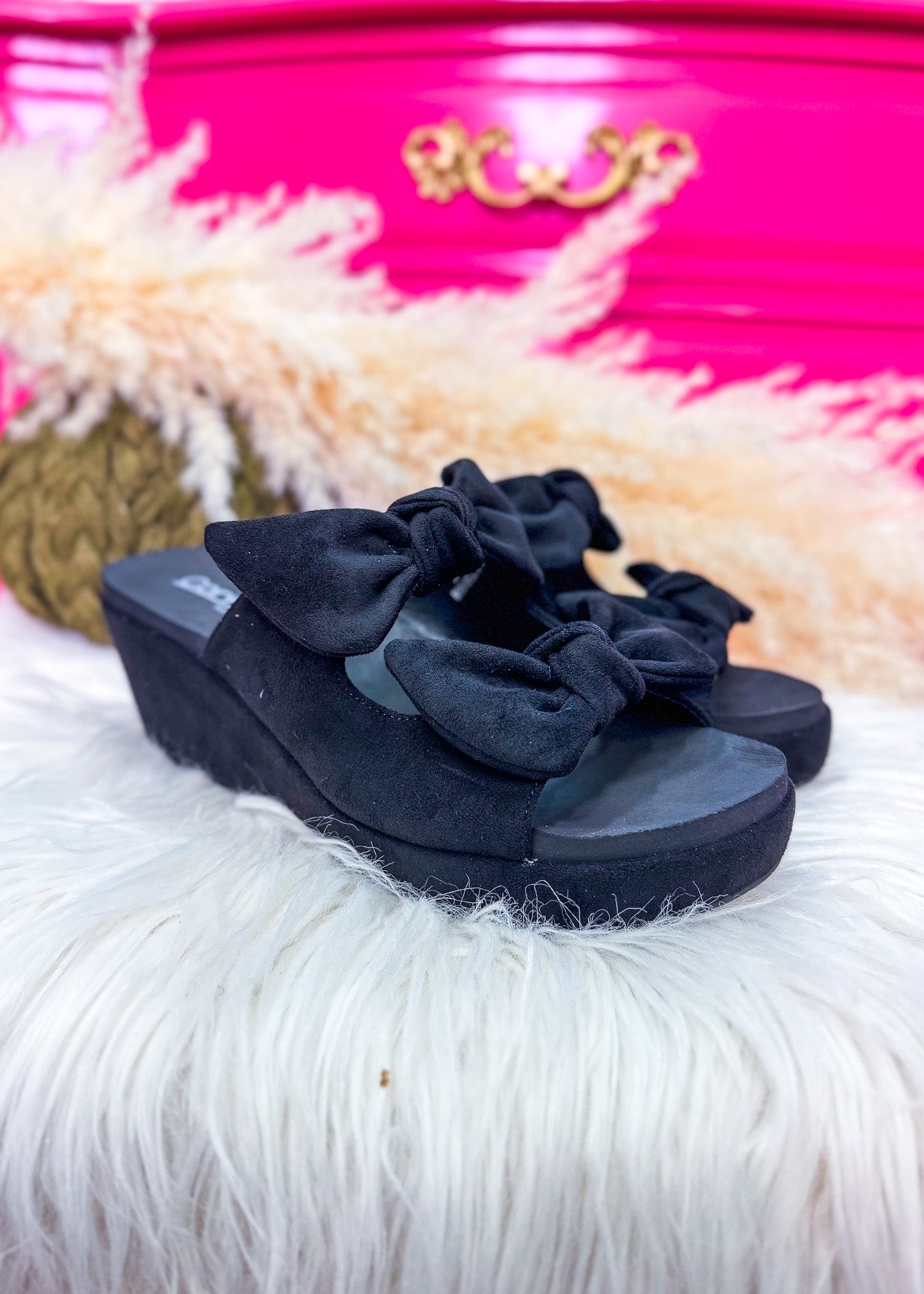 Sweet with a little sass, the Bowed Up wedge features double bow straps and a sleek black platform for an effortlessly chic lift.