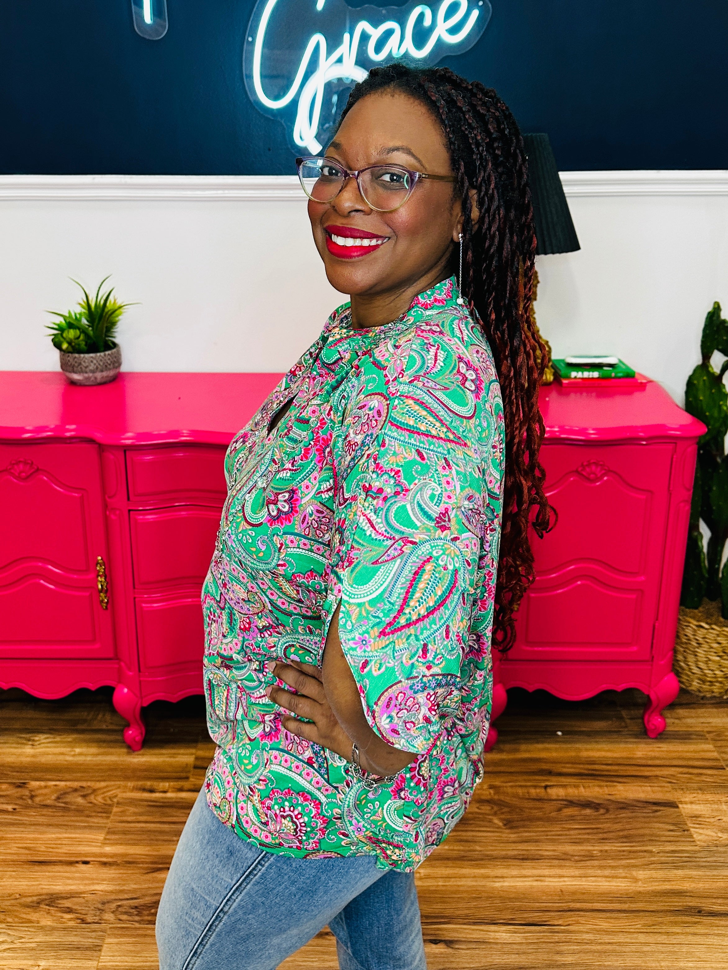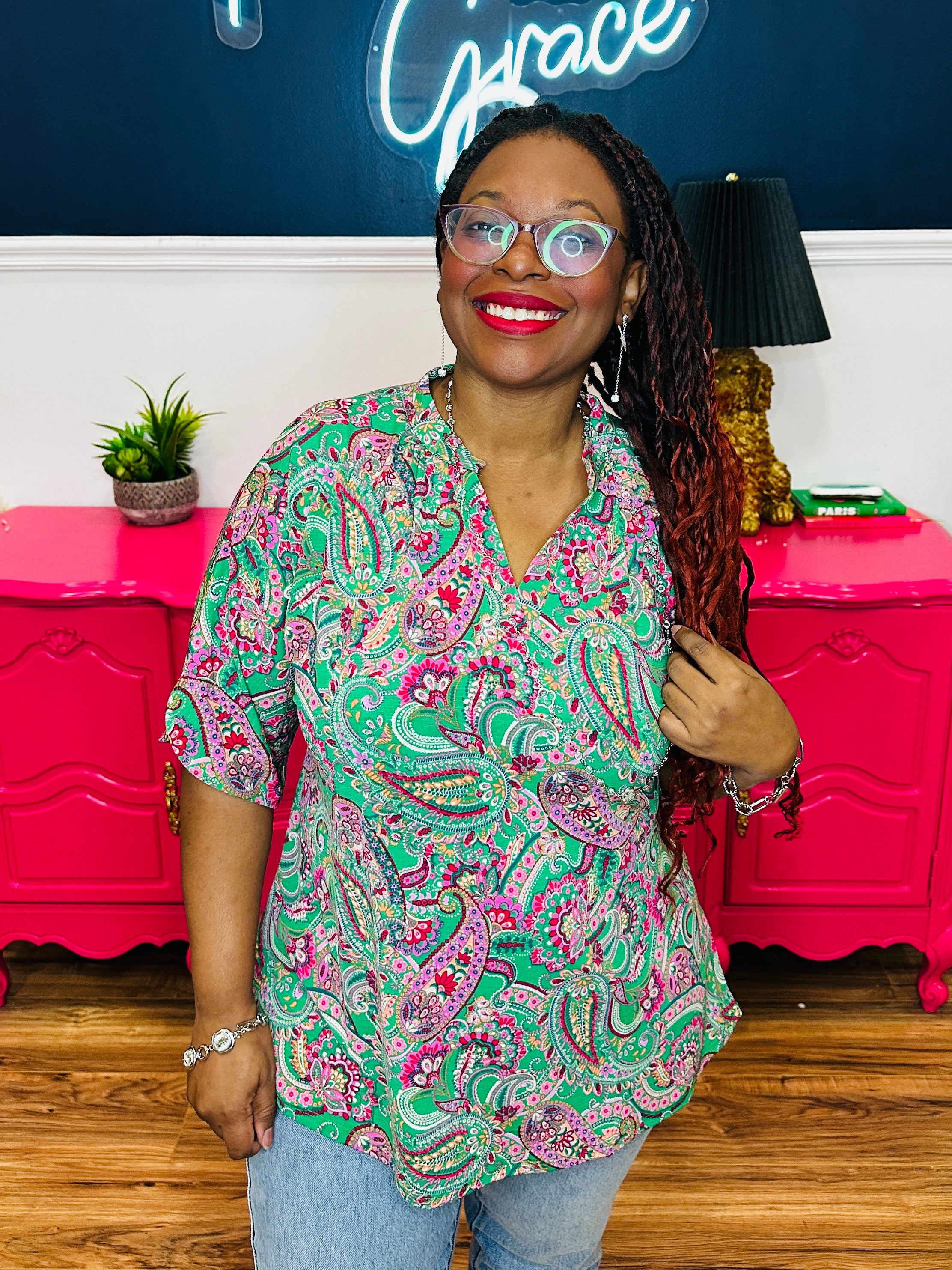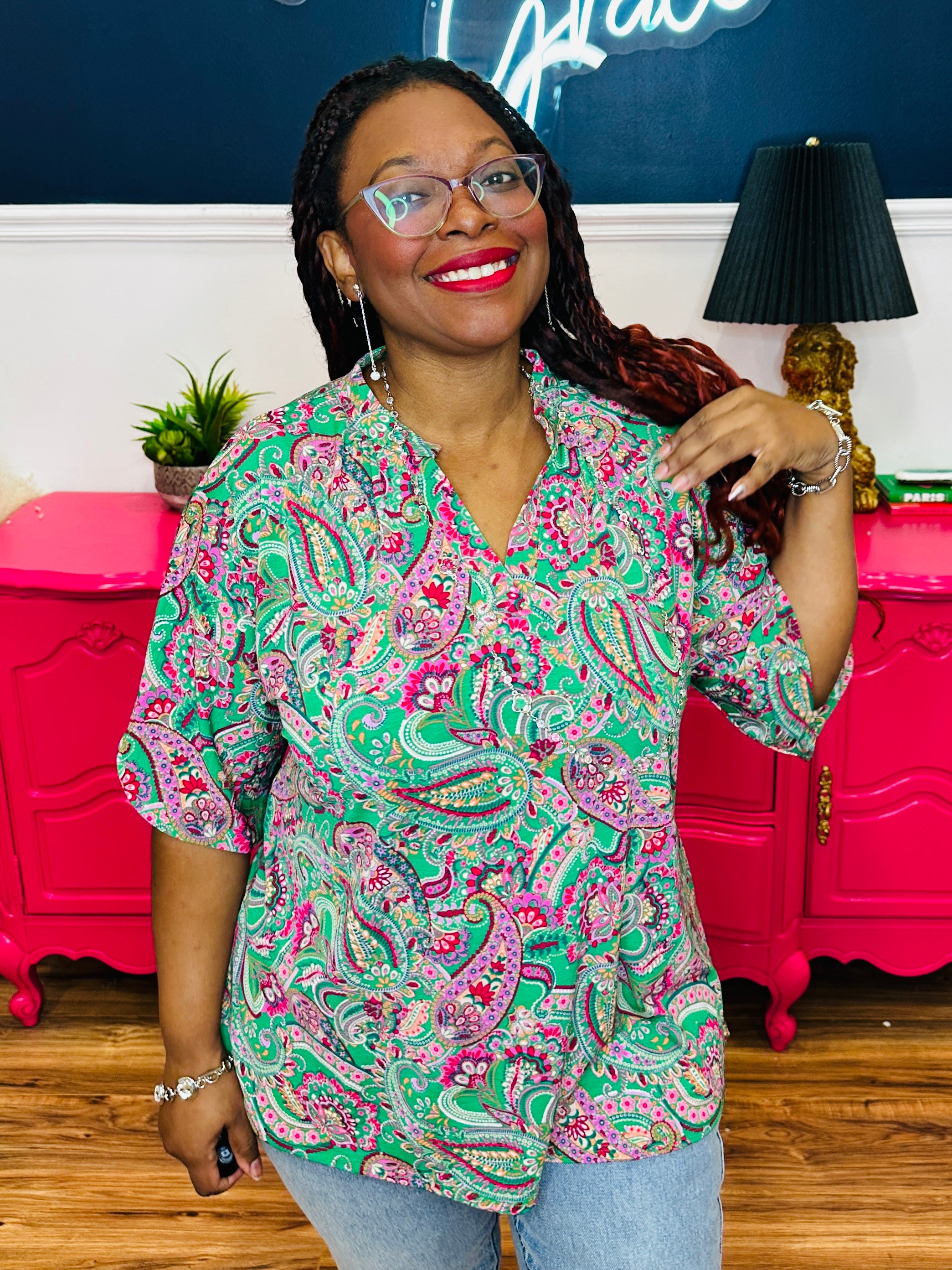 Dear Scarlett Lizzy Breeze Top - Kelly Green Paisley