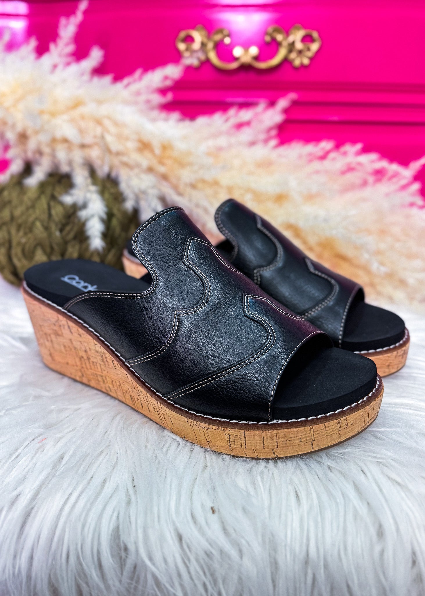 Step up your style with these Corky’s wedge mules! A cork platform and western-stitched upper give them the perfect mix of casual and chic. Slip them on and go—comfy insoles and an easy open-toe design make them your new everyday fave.