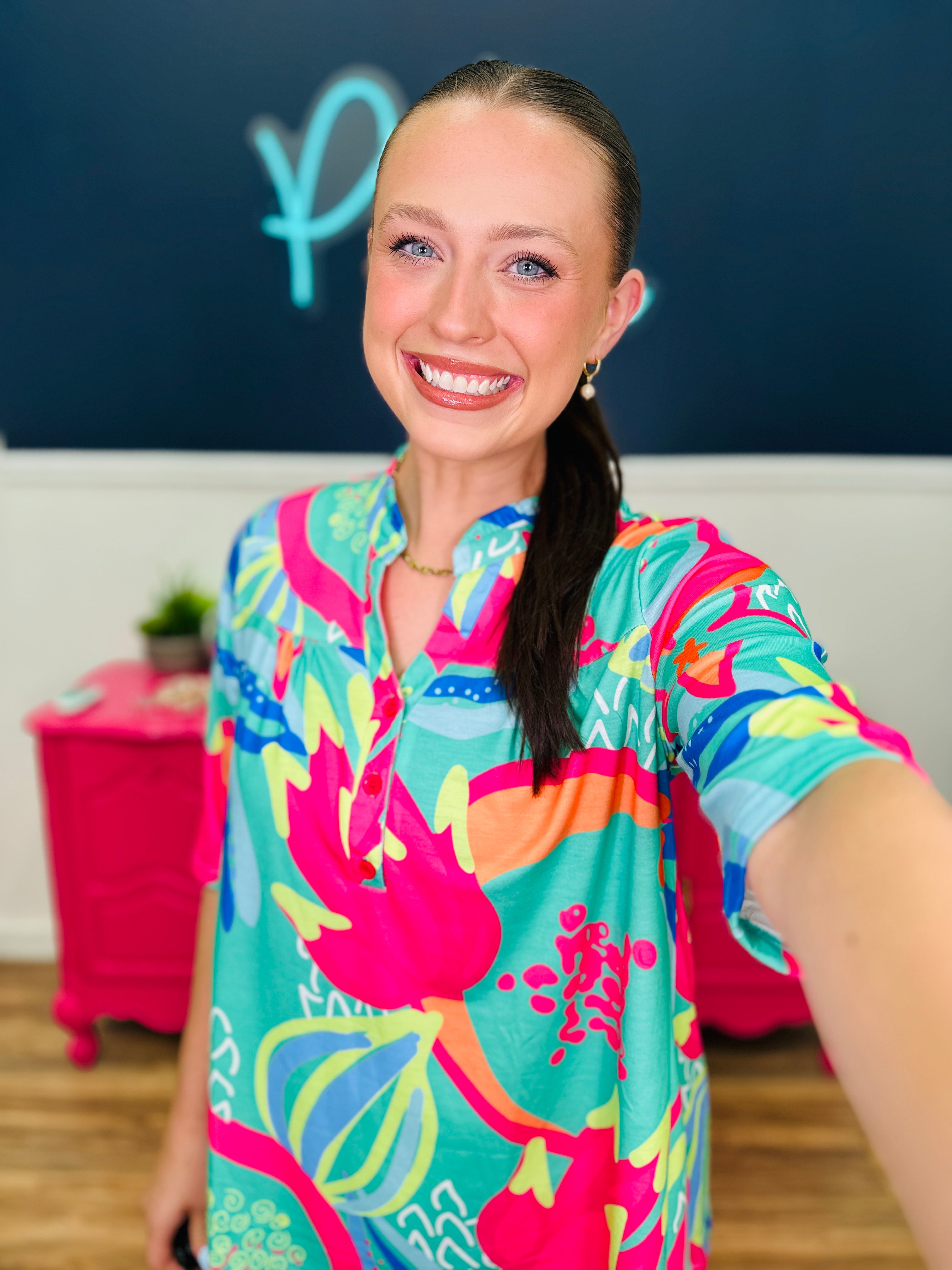 • Split V-Neckline | Mid-length Sleeves | Straight Hemline