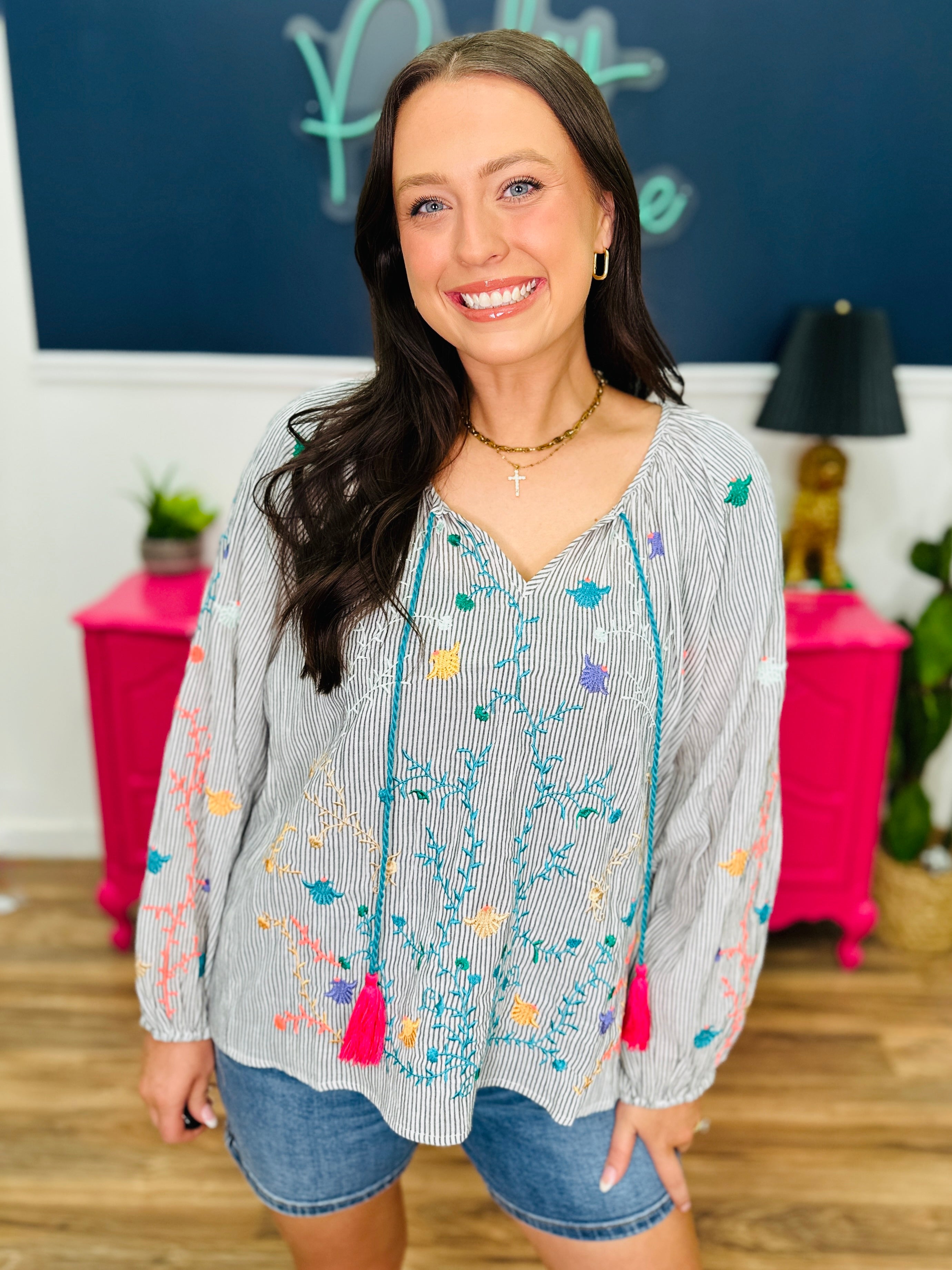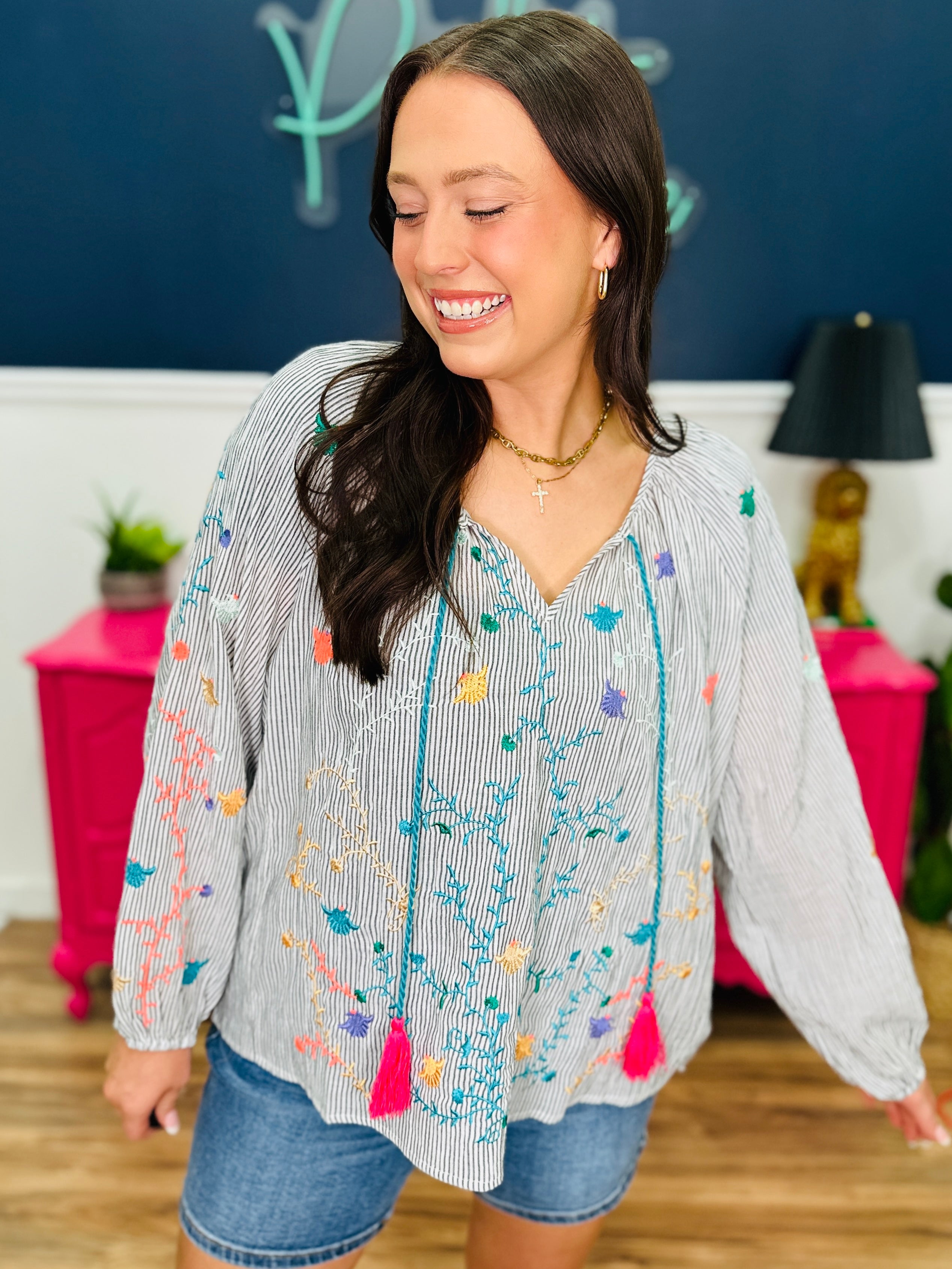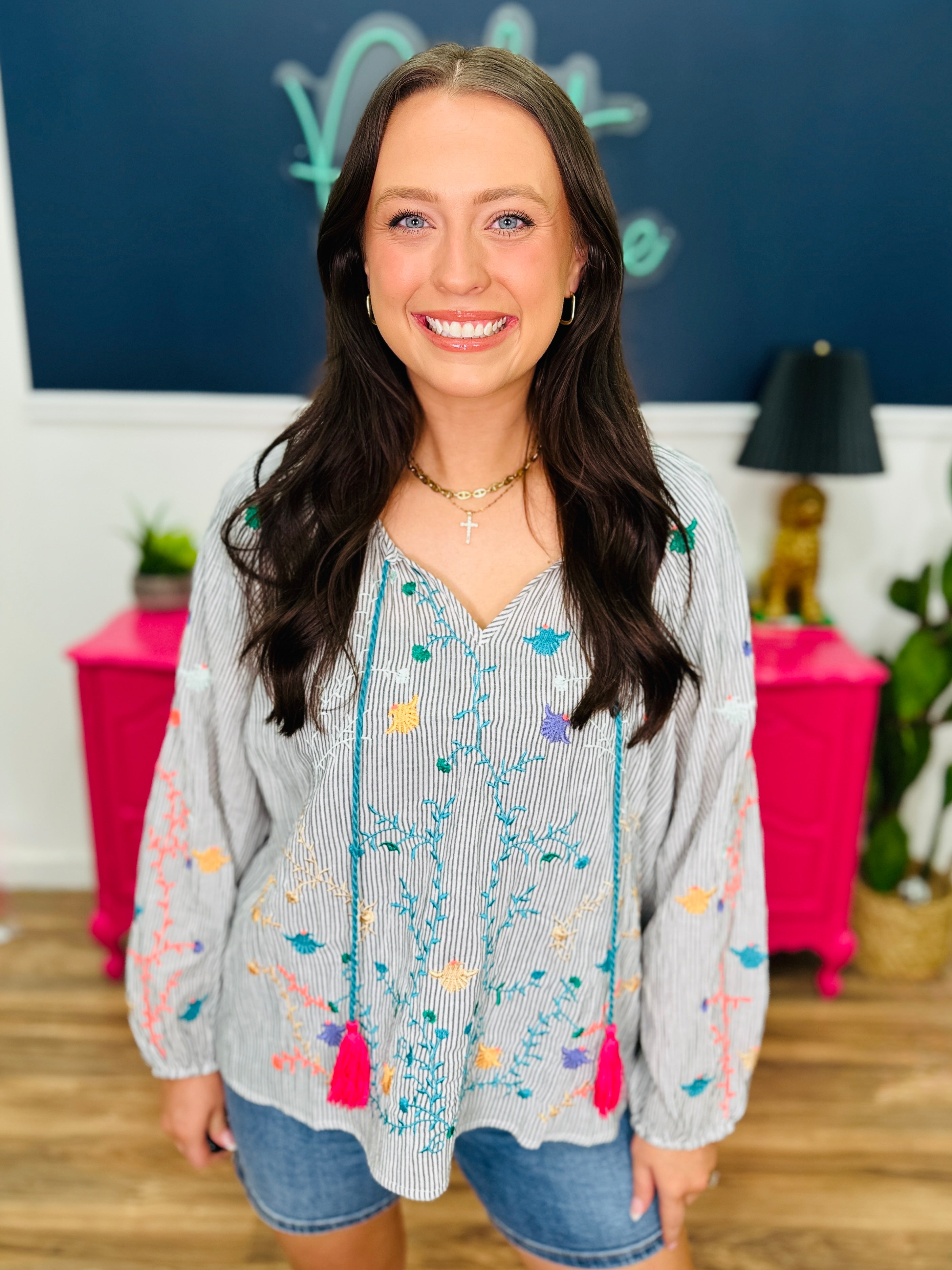 • Rounded V-Neckline With Tassel Tie Closure | Full Length Sleeves with Elastic Wrists