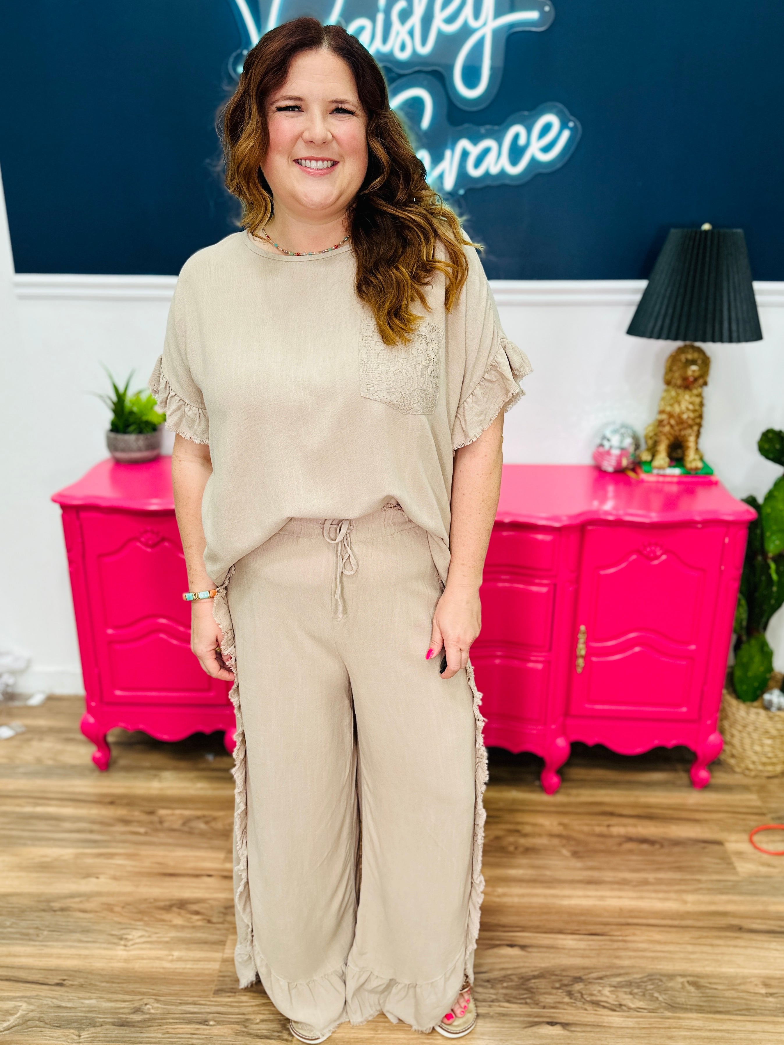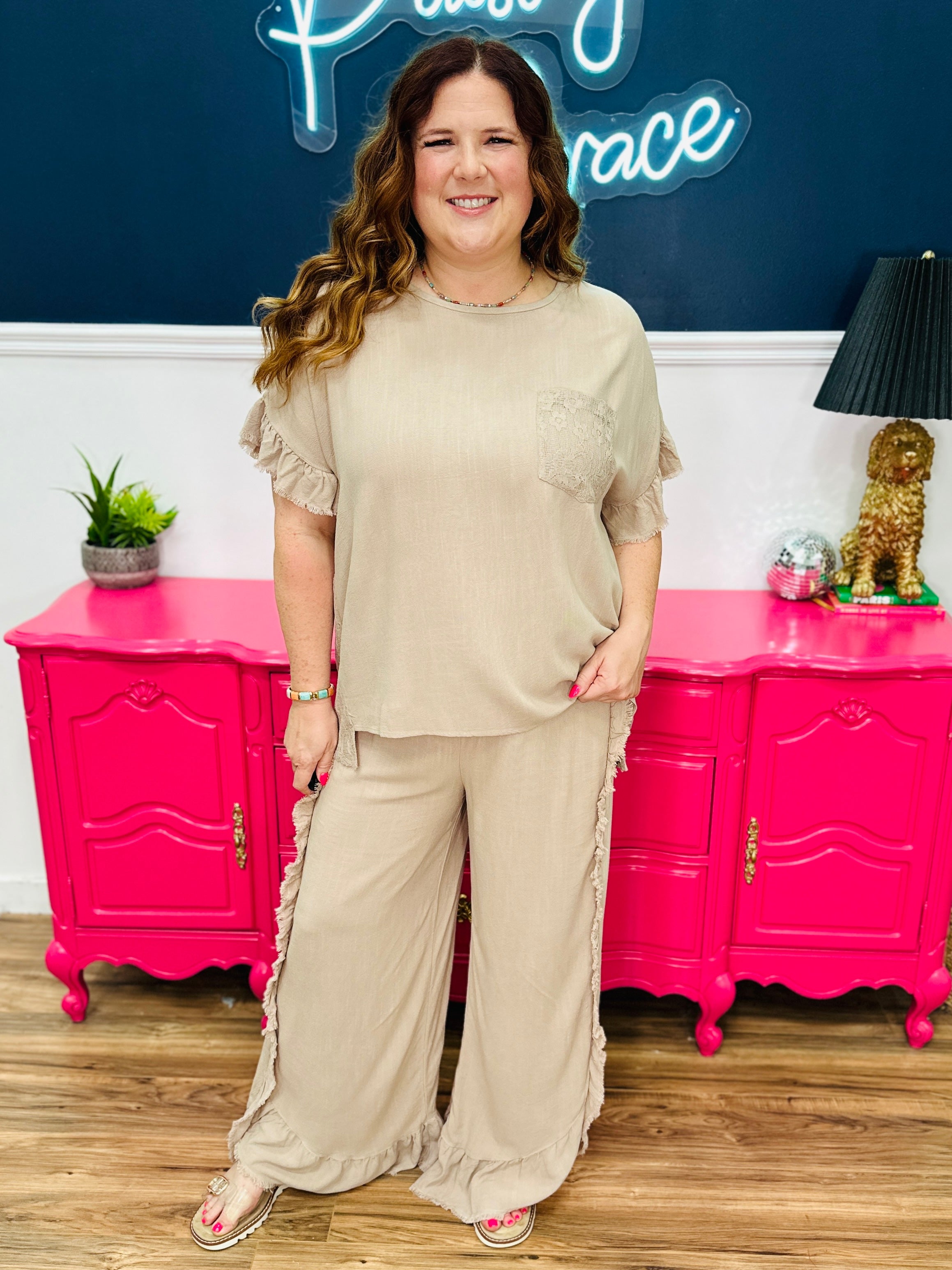 - High-Rise | Wide Palazzo Fit | Ruffle Leg Details