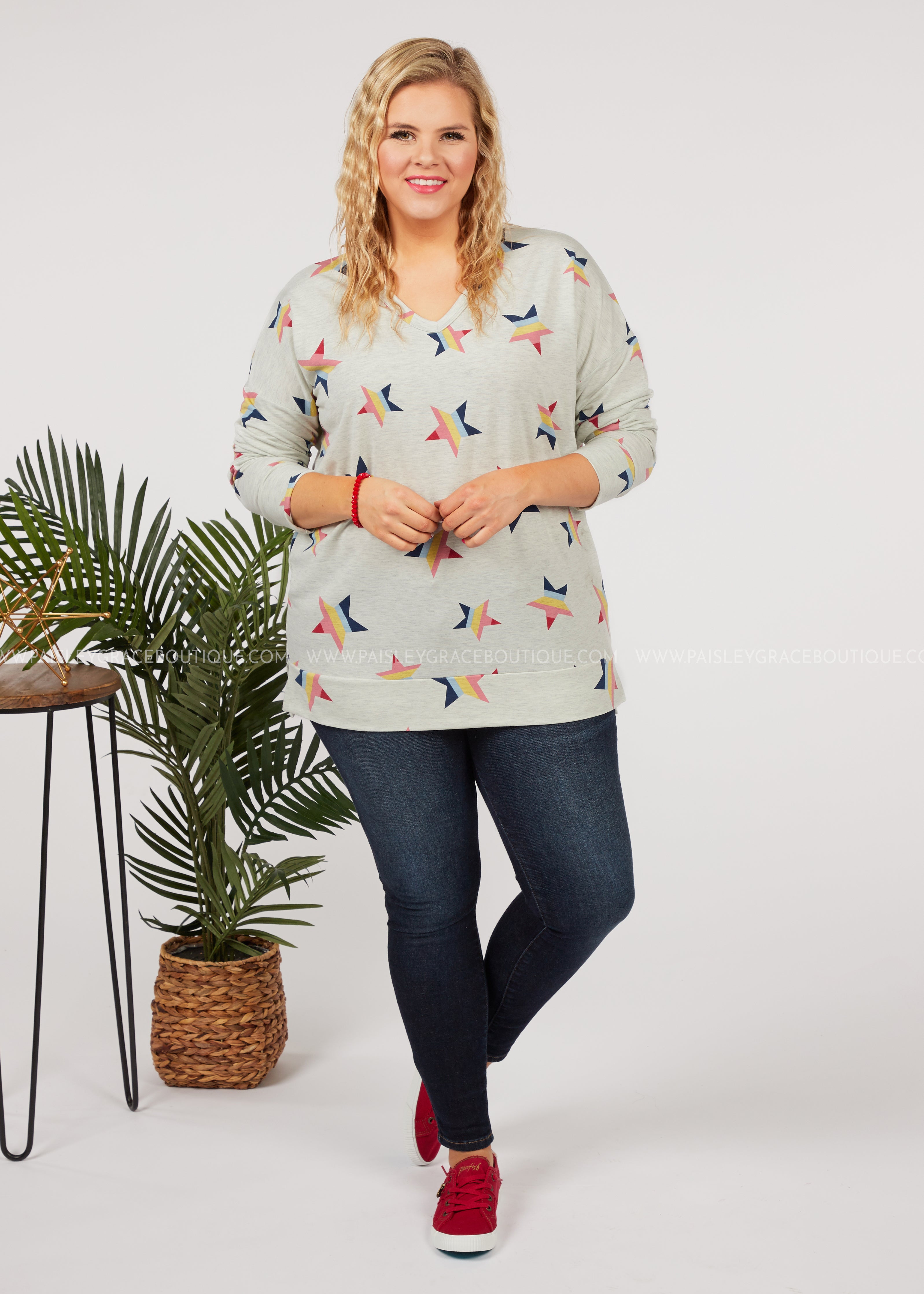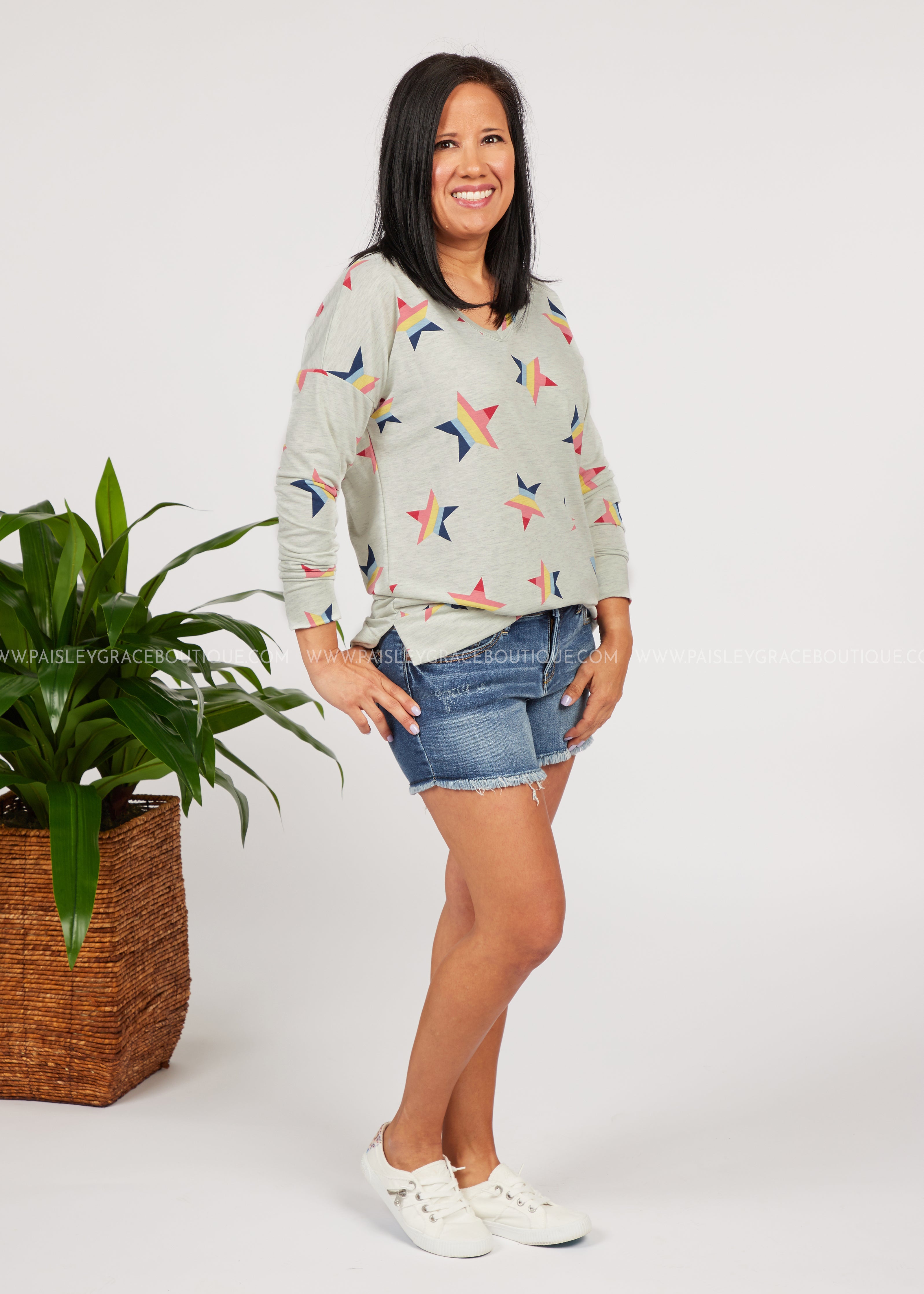 - Light Heathered Grey w/ Red, Pink, Yellow, Blue, and Navy Star Mix