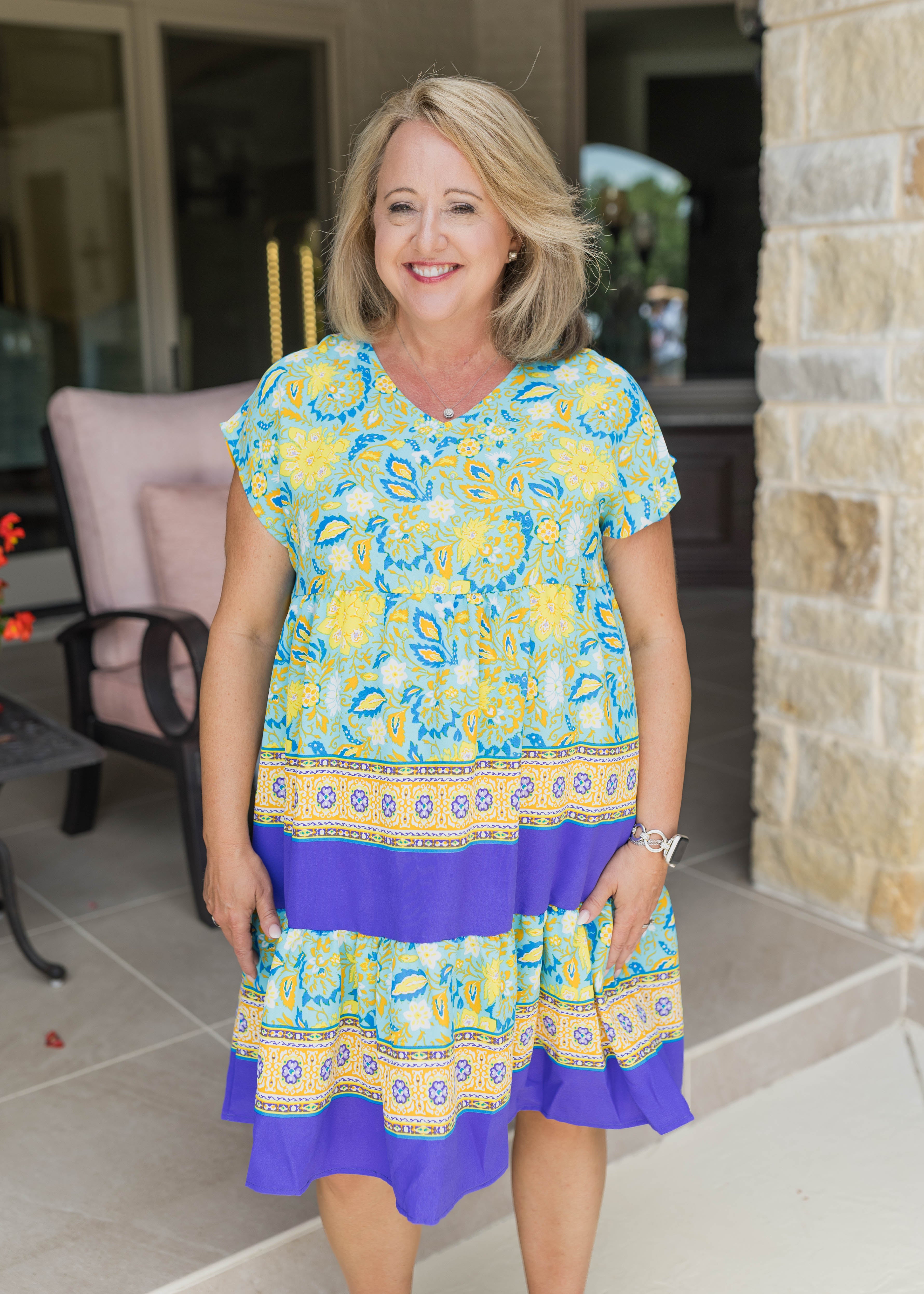 • V-Neckline | Short Sleeves | Tiered Hemline