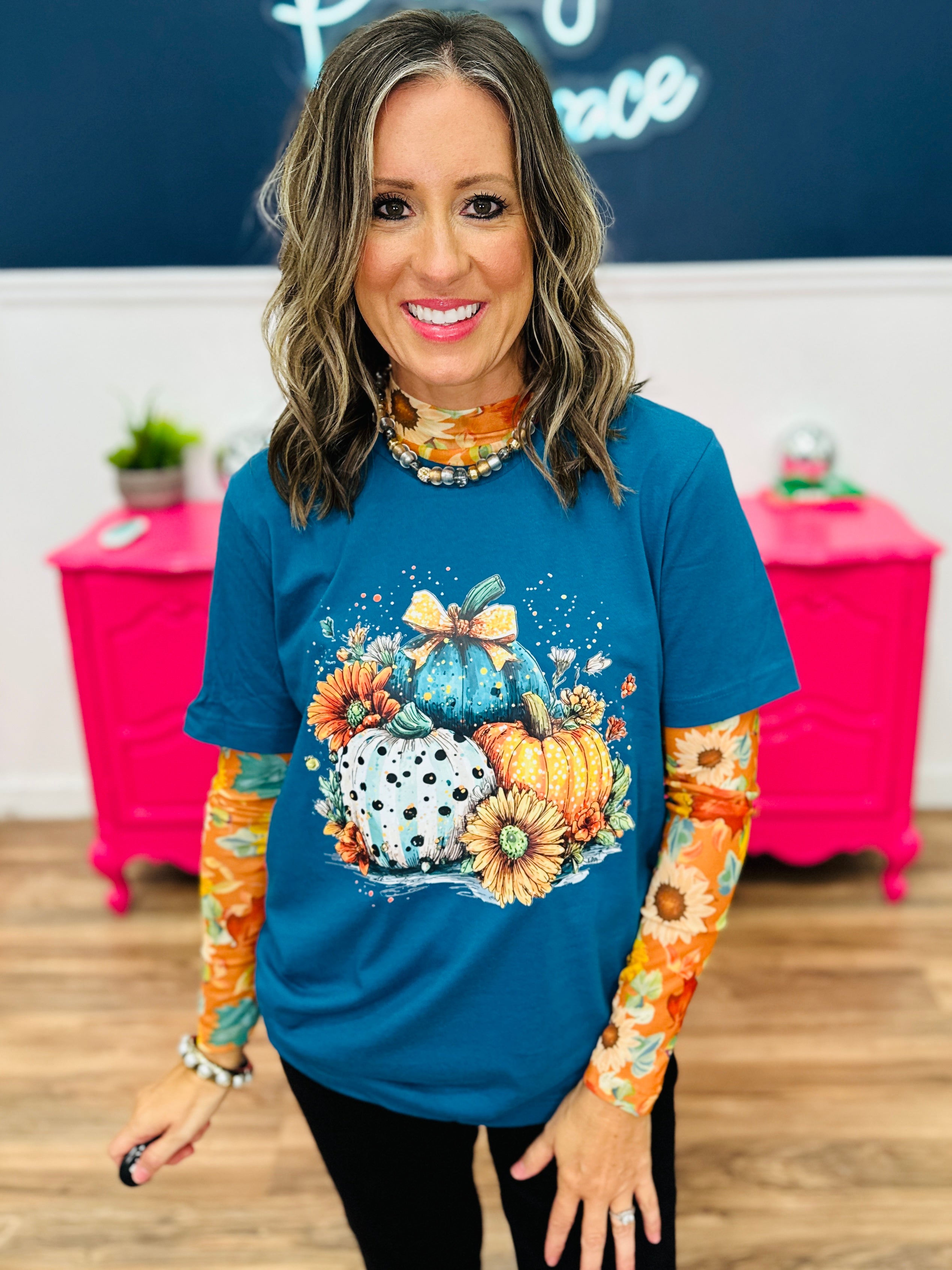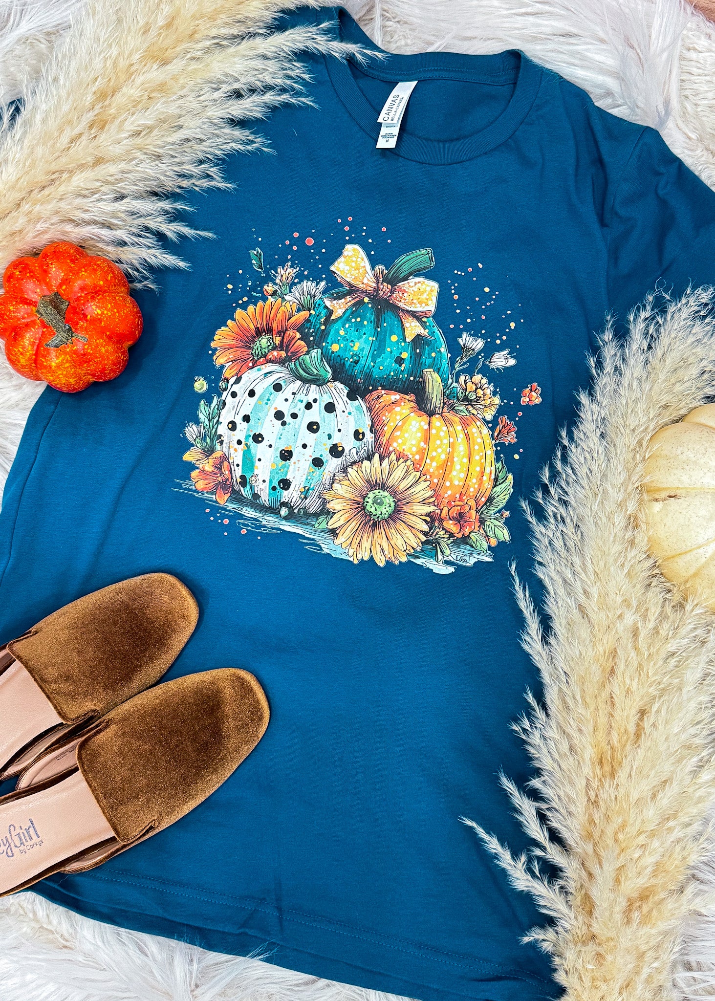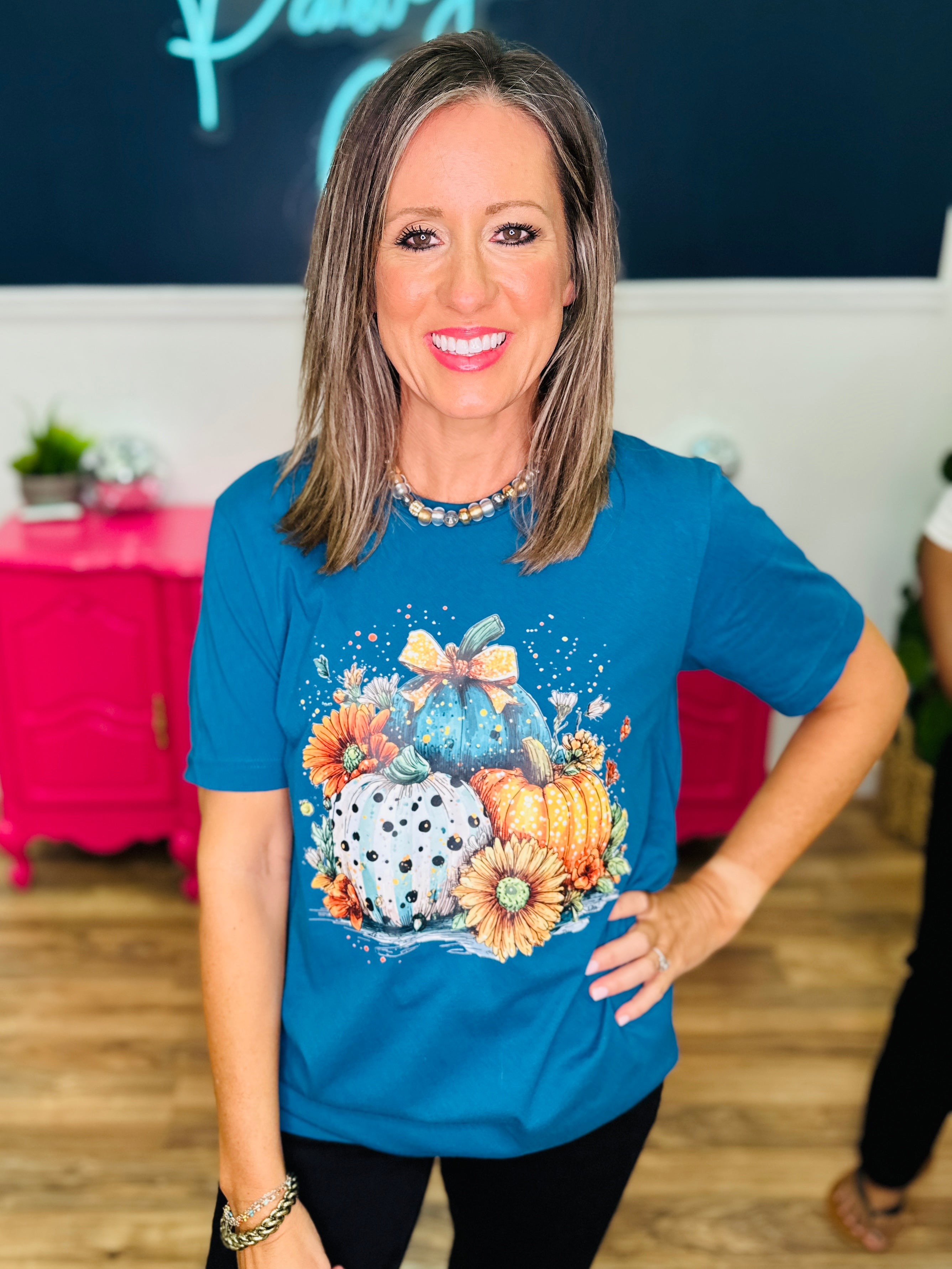 Pumpkin Please Graphic Tee - Crew or V Neck - Deep Teal