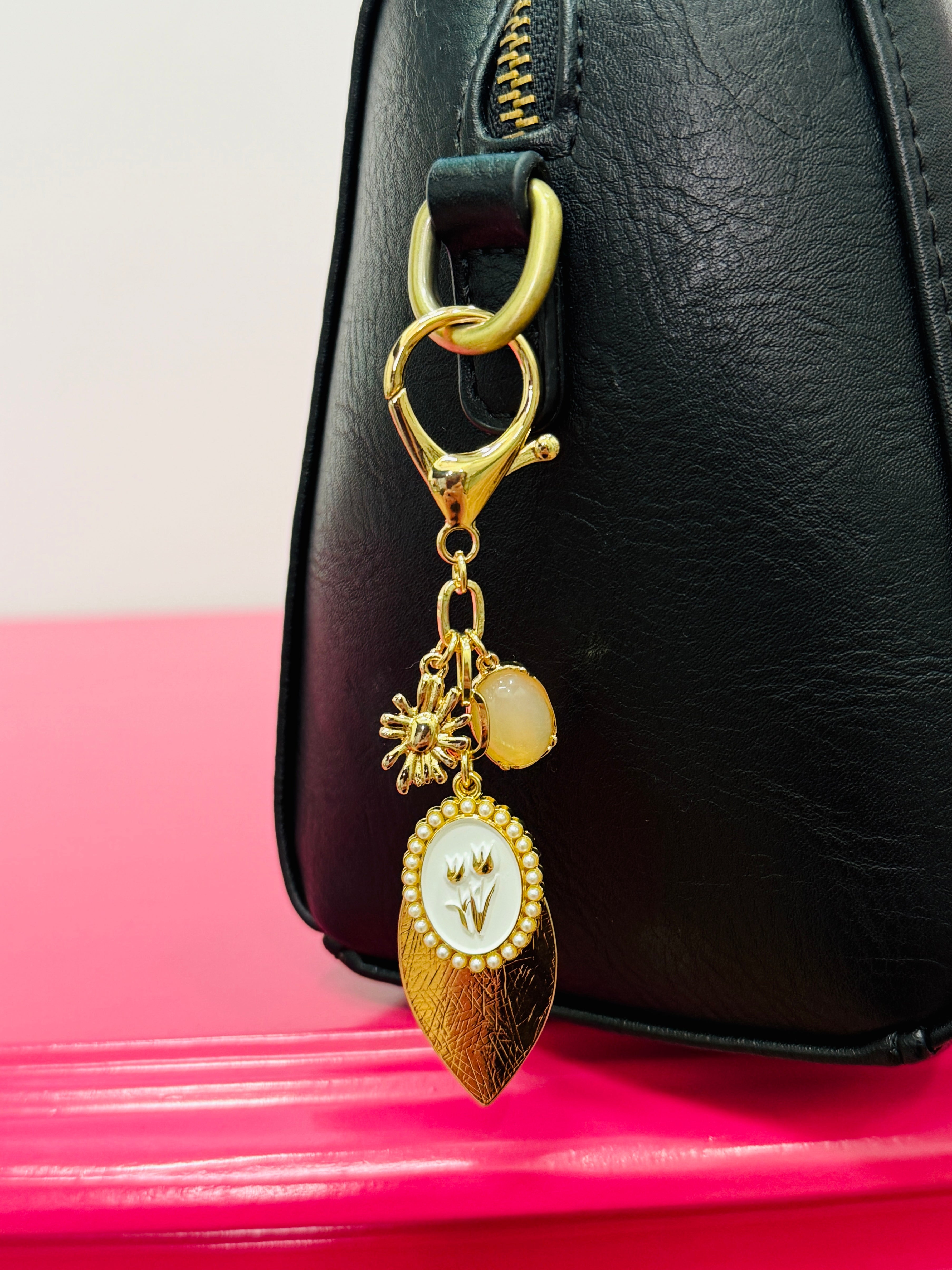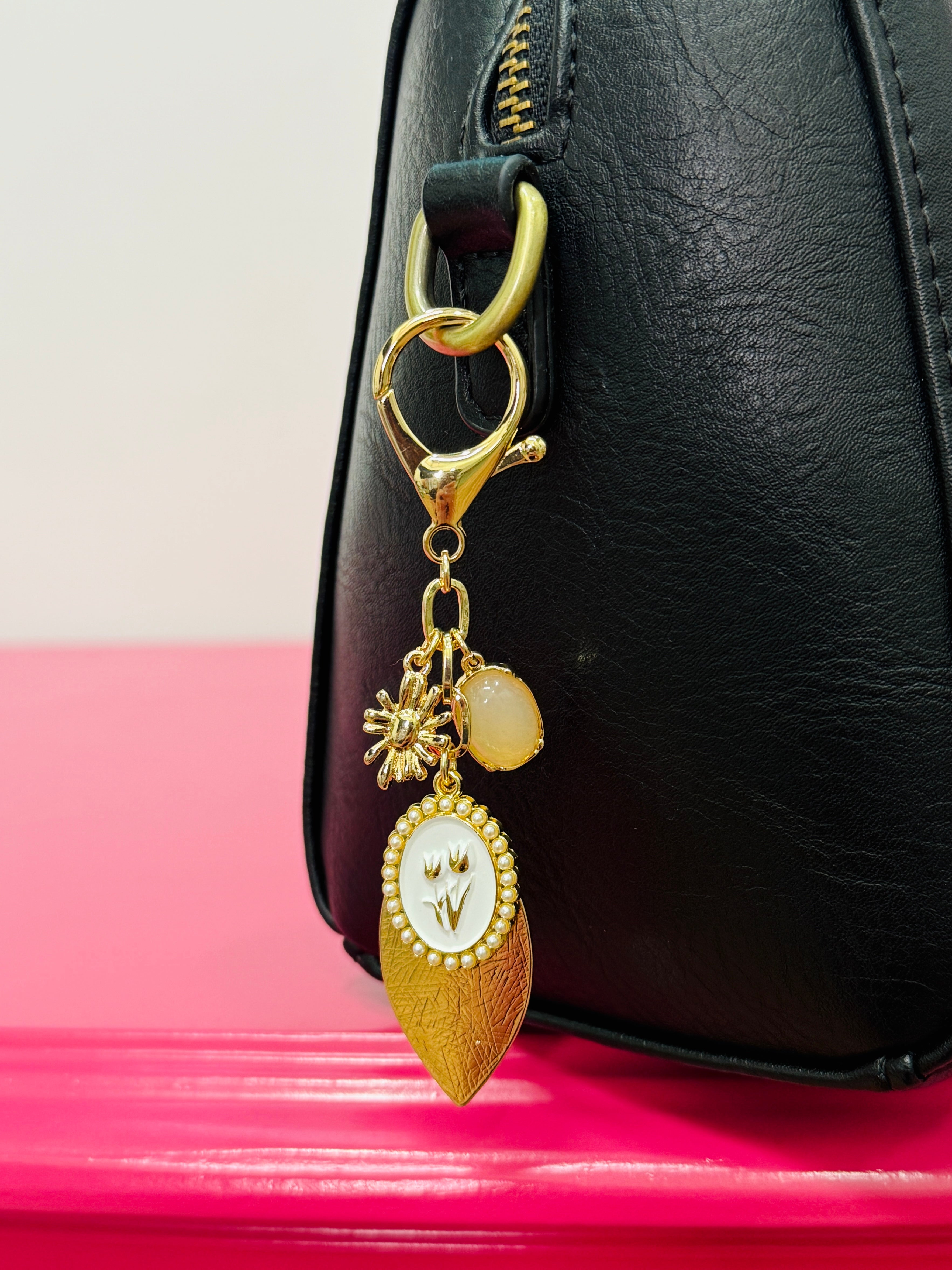 With golden leaves, floral-printed accents, and a shimmering stone charm, it’s the little detail that makes a big statement. Perfect for those who love a feminine, earthy twist on their accessories.