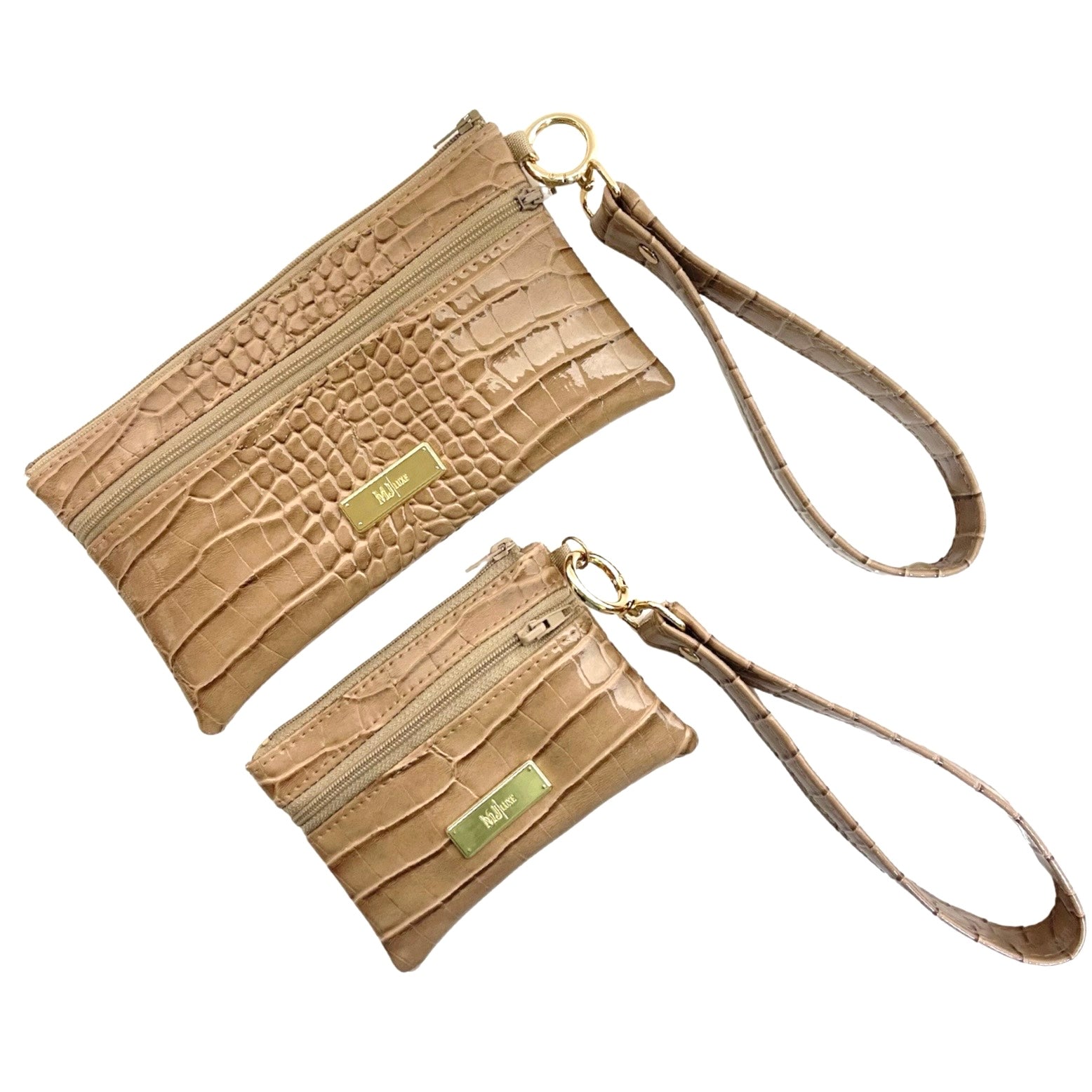 Both feature upgraded MJ Luxe hardware, a matching 7.5" x 1.25" wrist strap, and the premium craftsmanship you’ve come to expect from Makeup Junkie Bags. Each piece is handmade in Texas and backed by our lifetime guarantee, because luxury should last a lifetime.