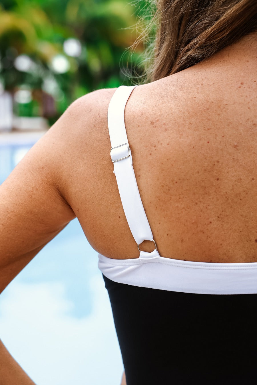 PREORDER-Hit The Pool Skirted Swimsuit- Black/White