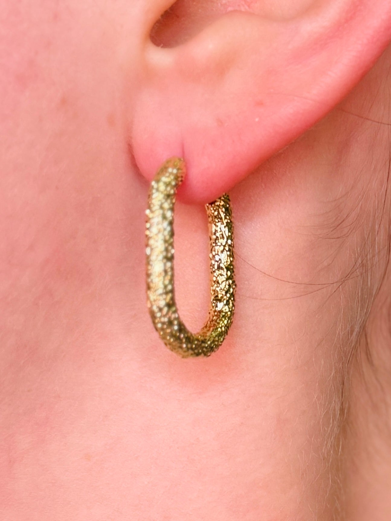 Featuring gold textured oval hoop earrings.