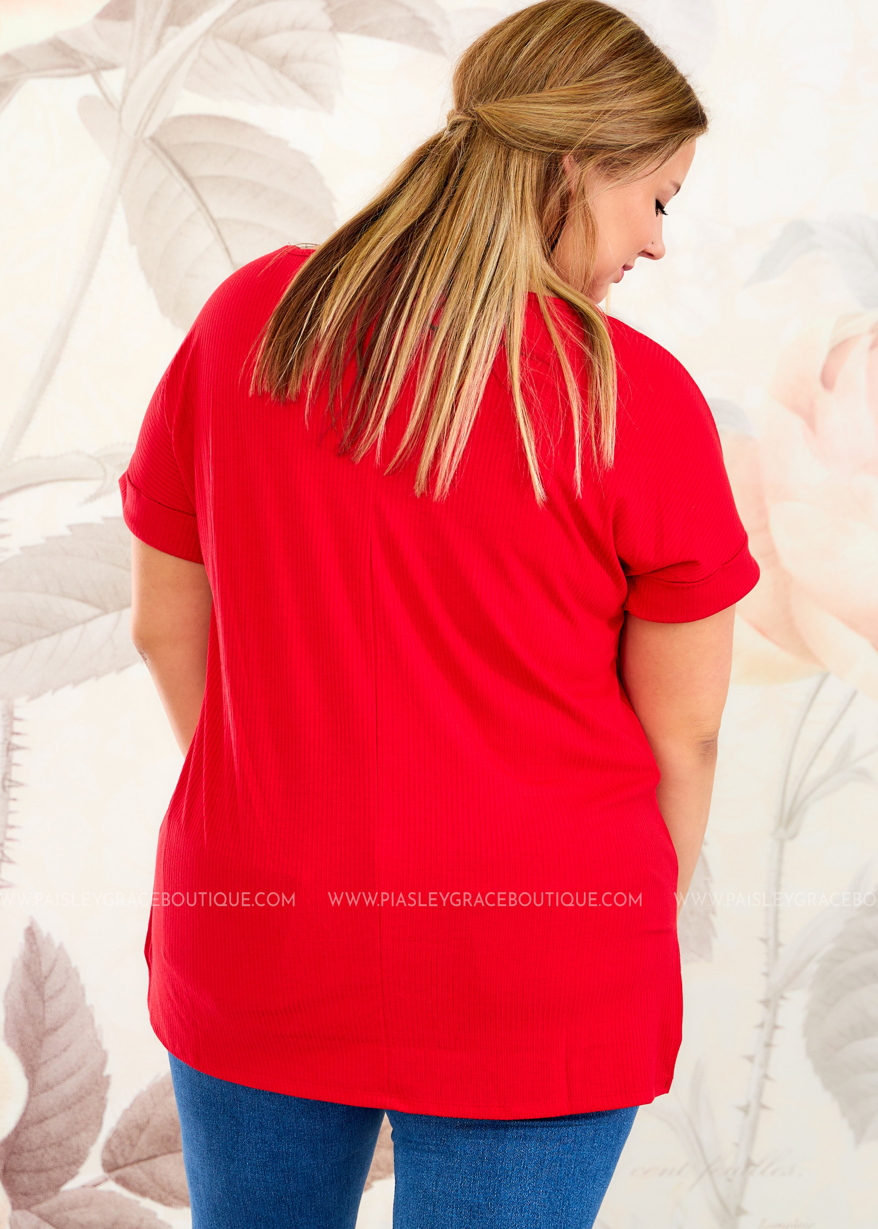 - V-Neckline | Cuffed Short Dolman Sleeves | Split Hemline