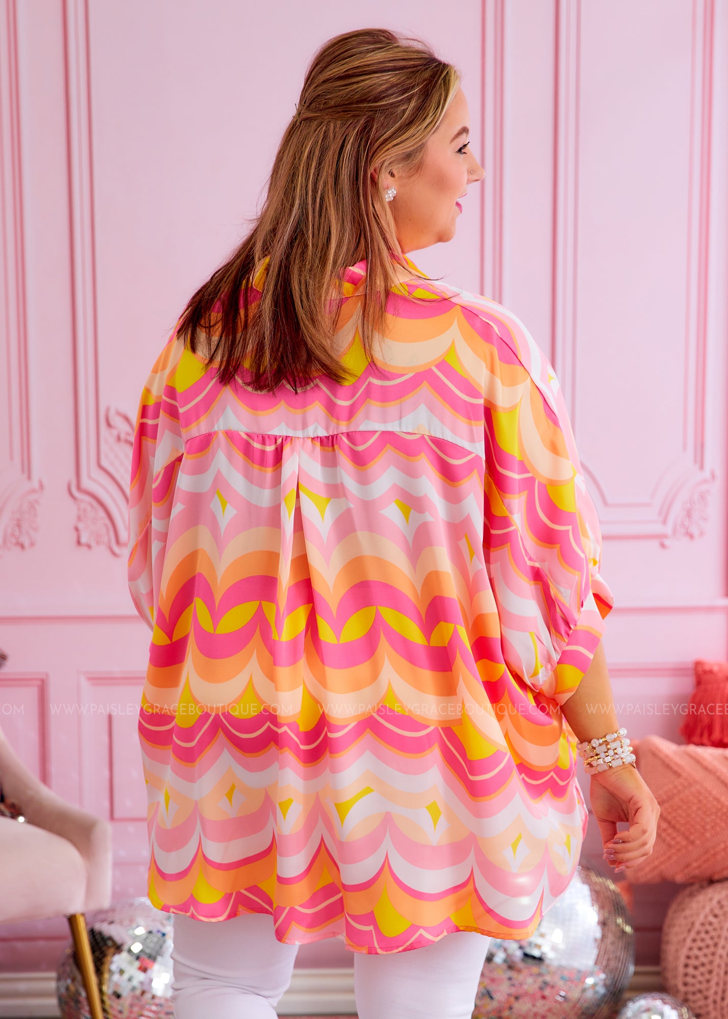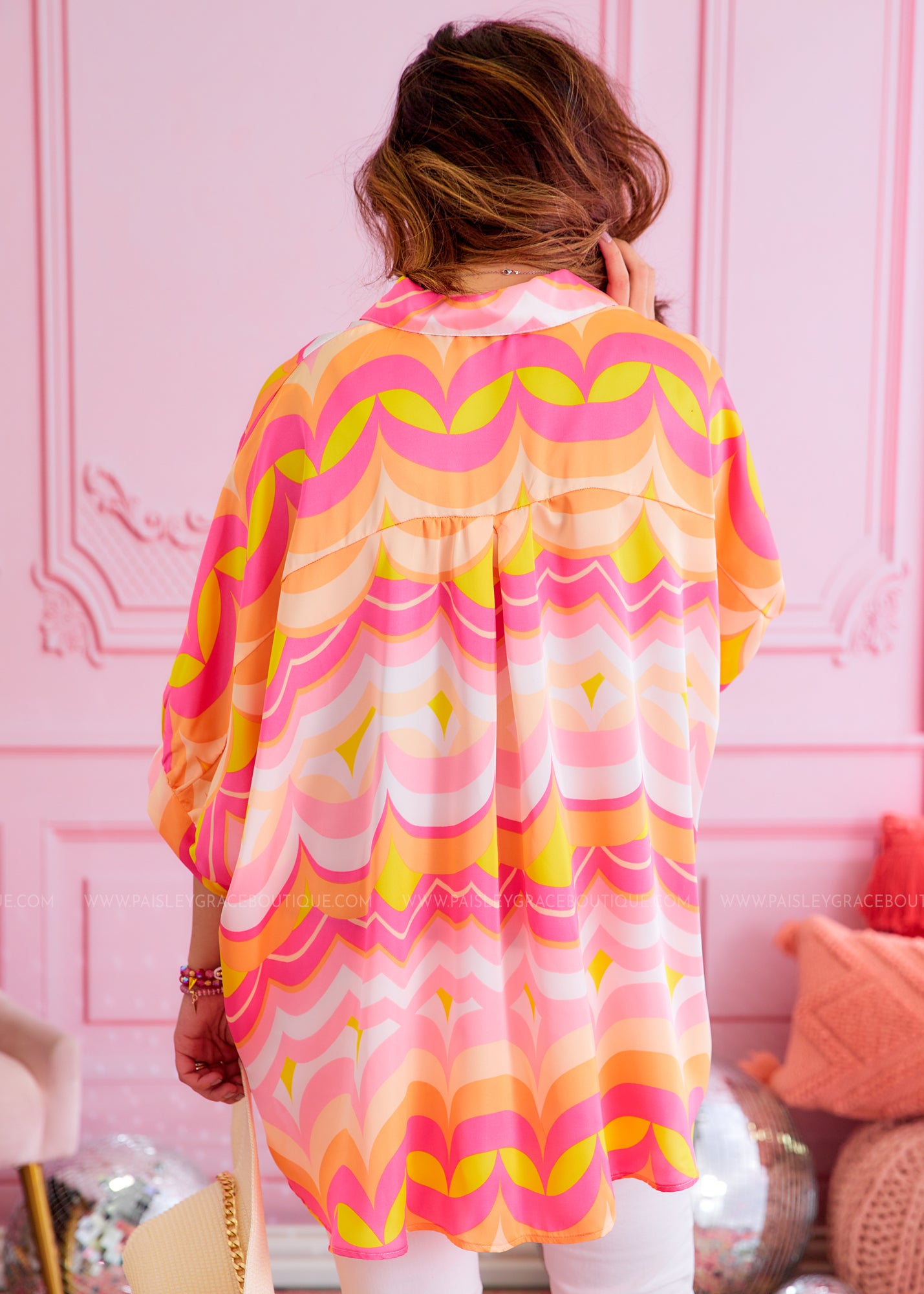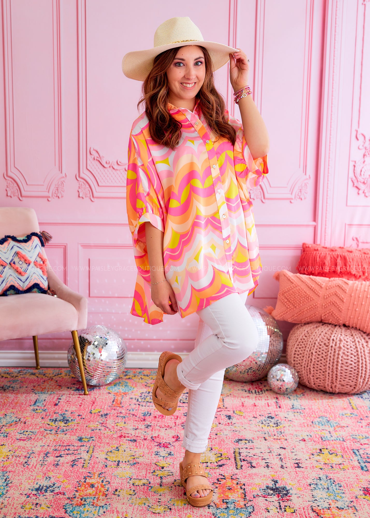 - Collared Neckline | Mid-length Dolman Sleeves | Curved Hemline