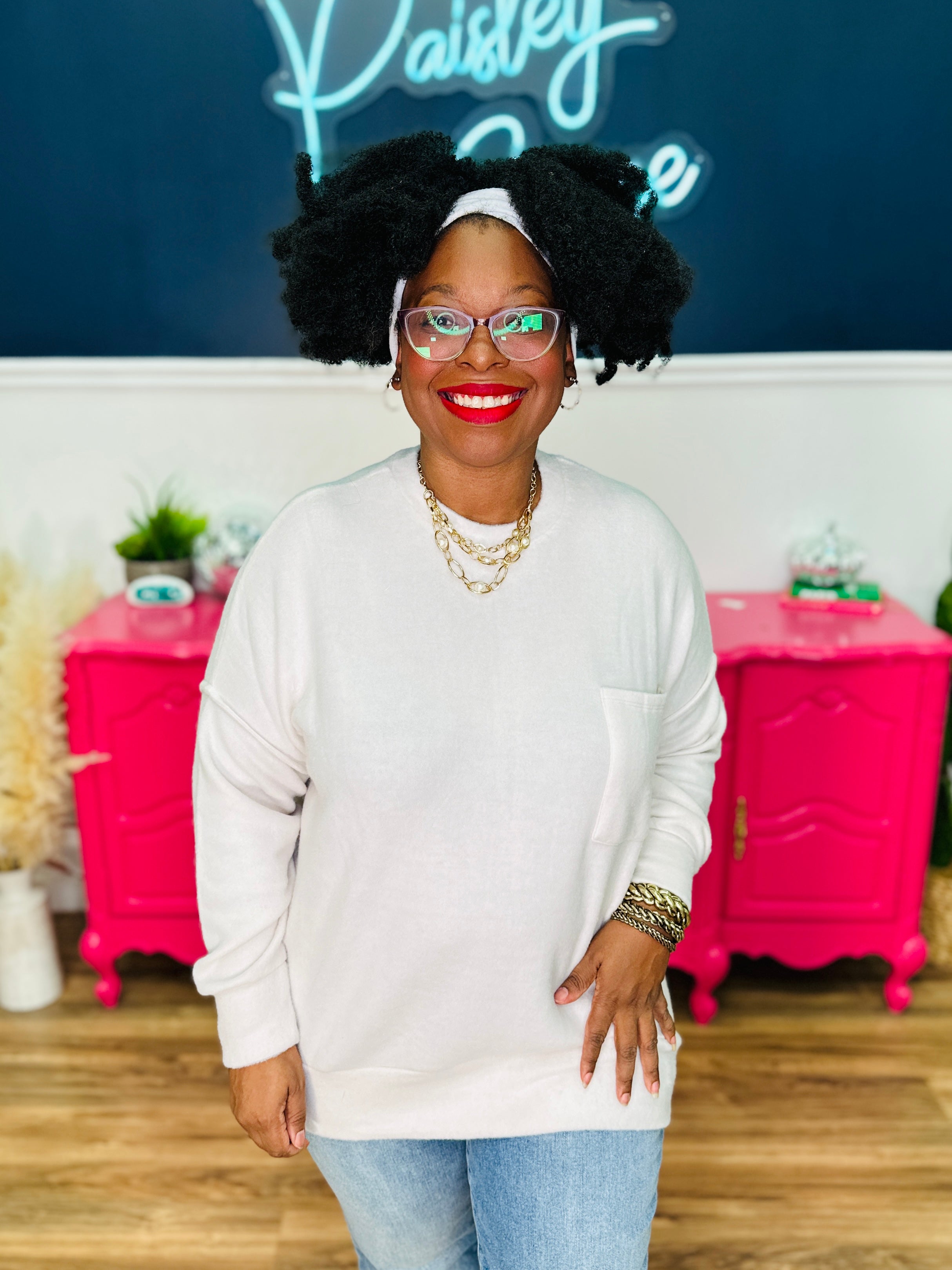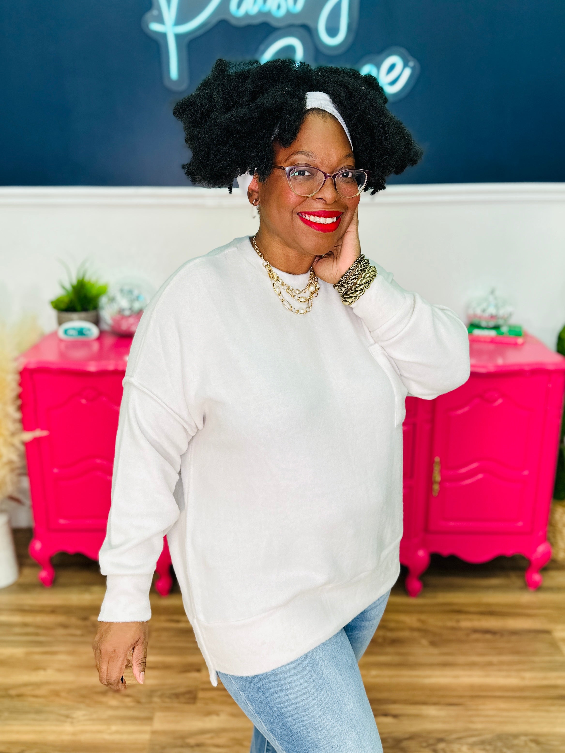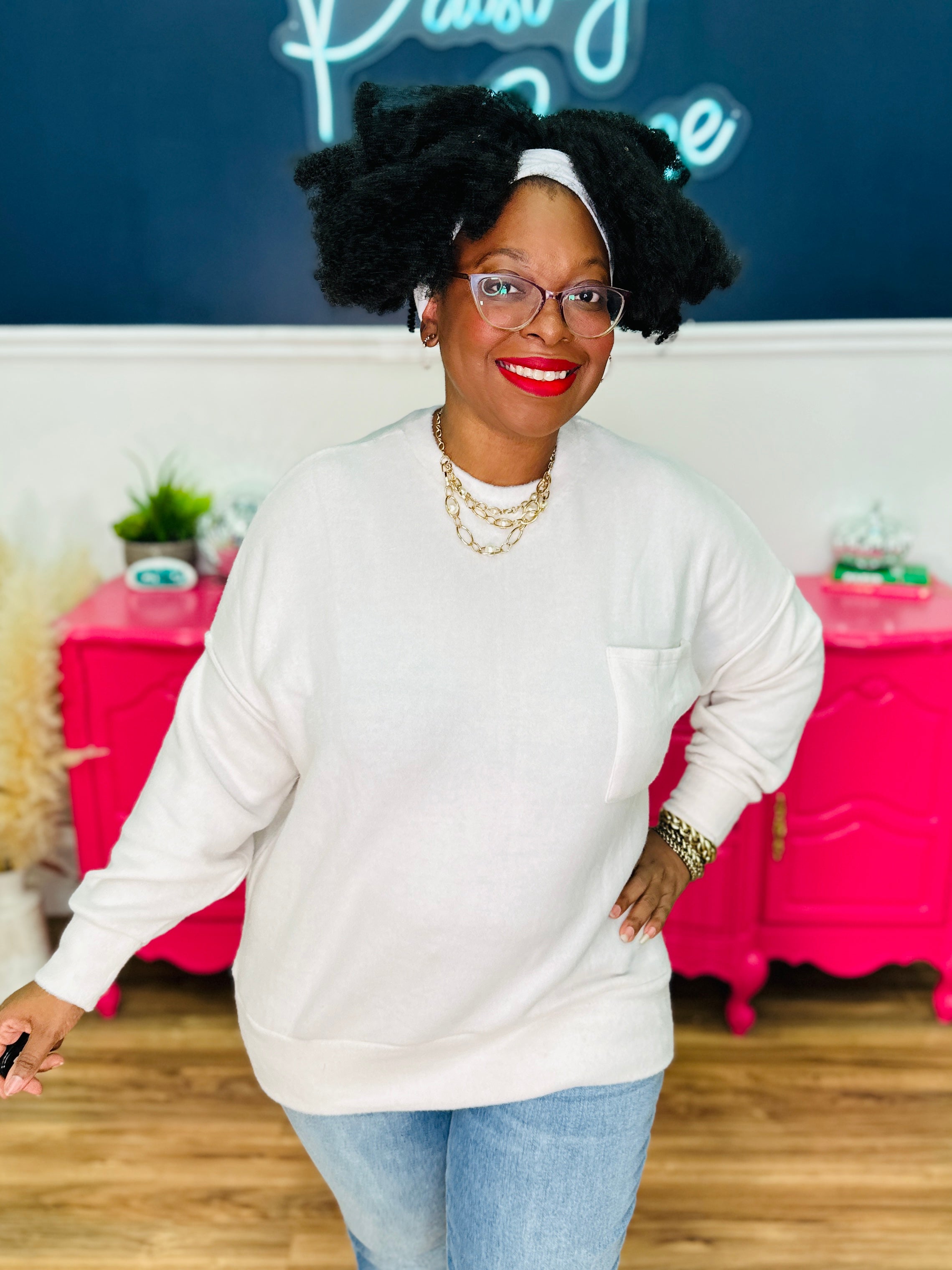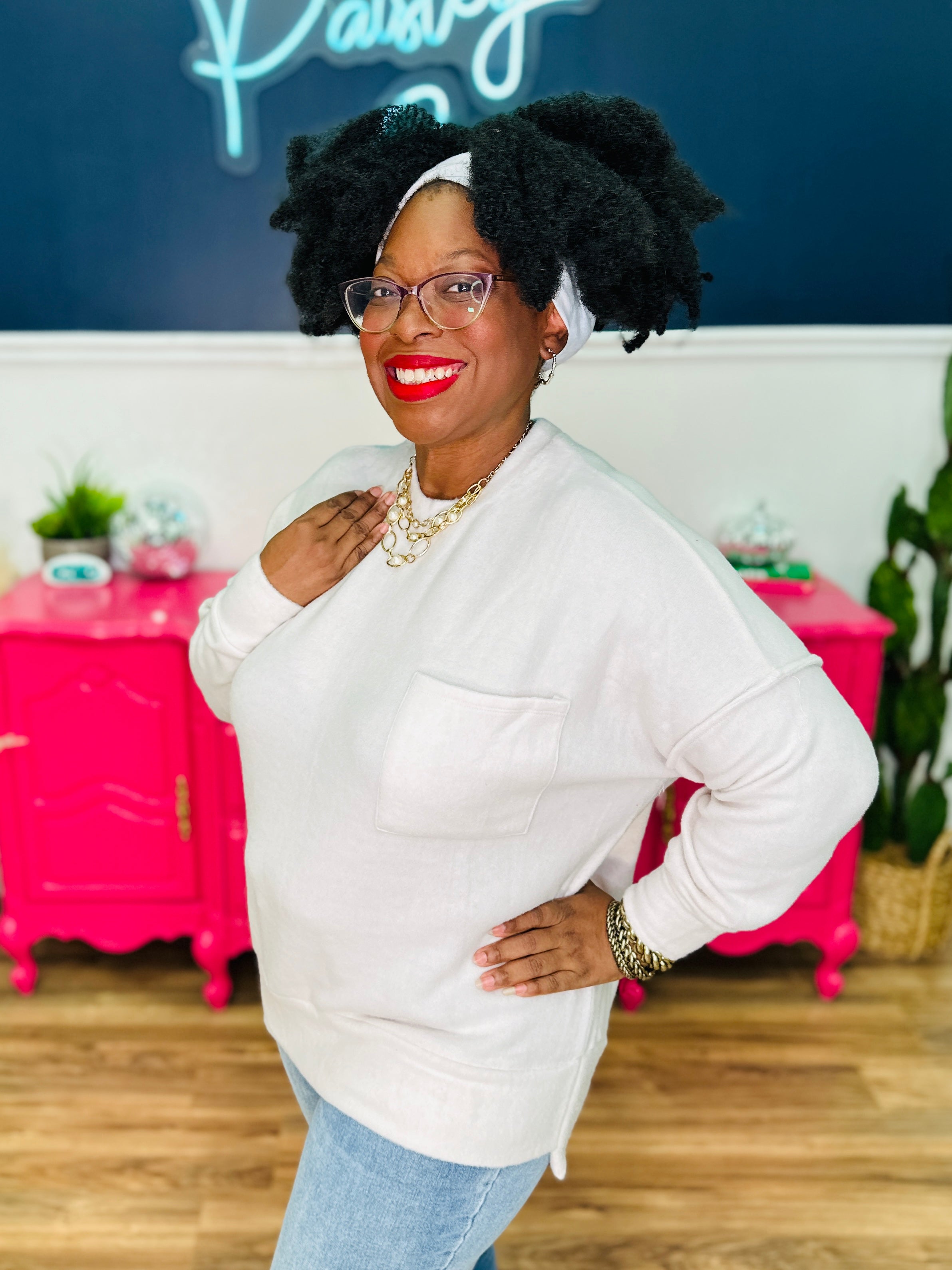 - Model: Shante wears a L/XL