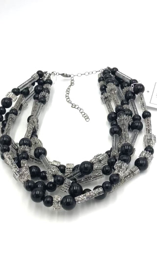 DB - Charm Necklace-Bow Checker Heart Rhinestone