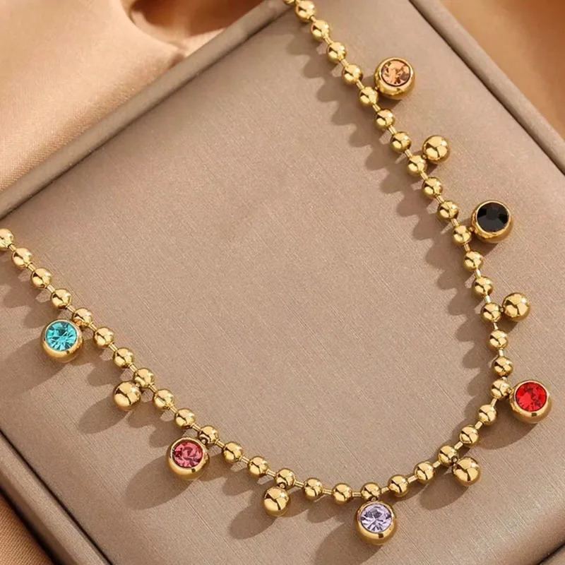 Why not add a sprinkle of dazzling charm to your day with this delightful necklace? The delicate beaded chain and vibrant gemstones create a whimsical and eye-catching piece that's sure to bring a smile to your face and a bit of sparkle to your style.