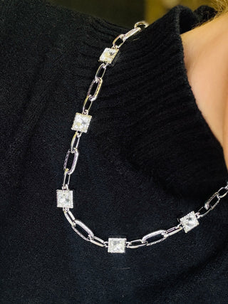 Aubrey Crystal Chain Necklace - =-
