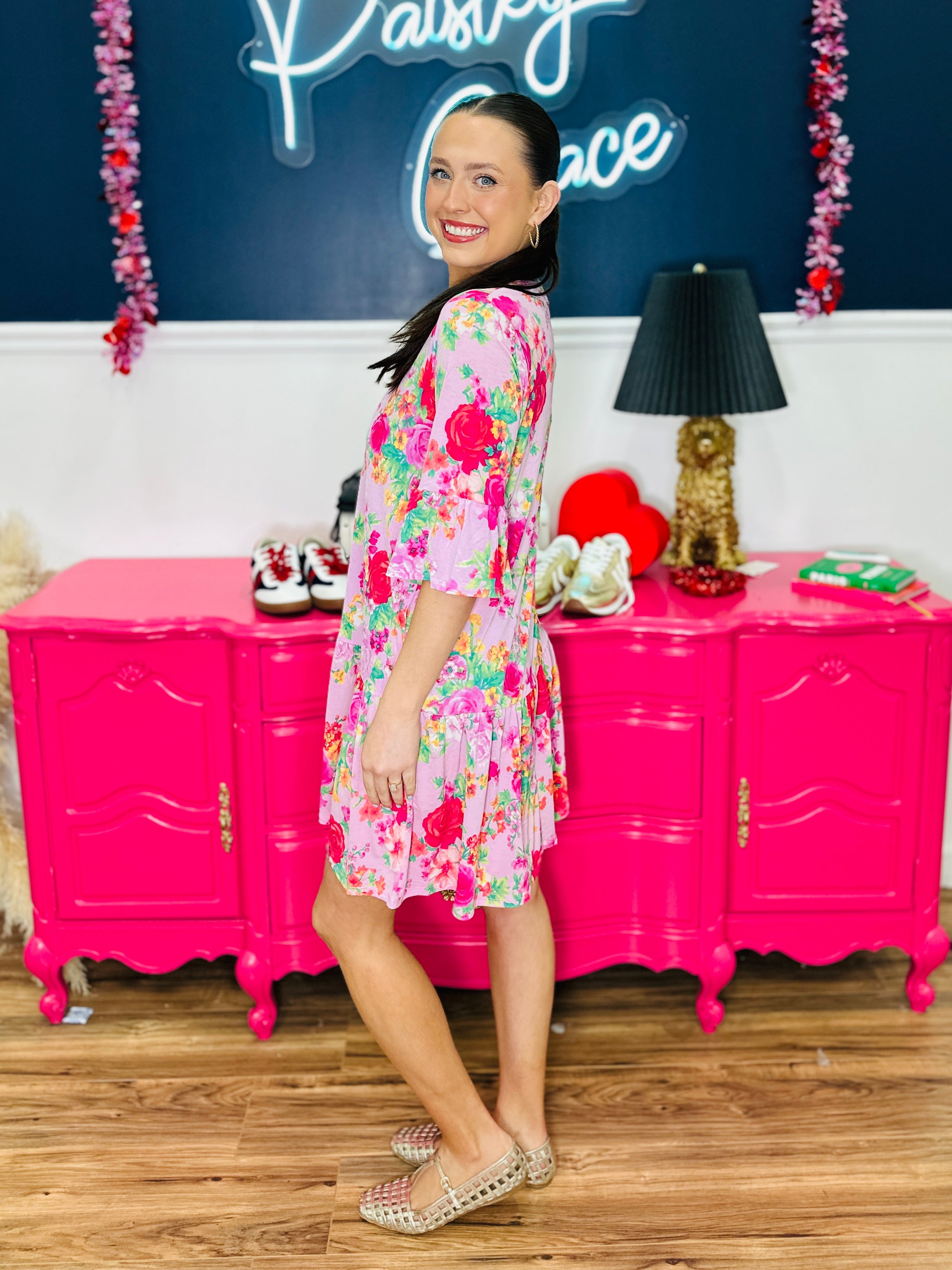 - Collared V-Neckline | 3/4 Sleeves | Tiered Hemline