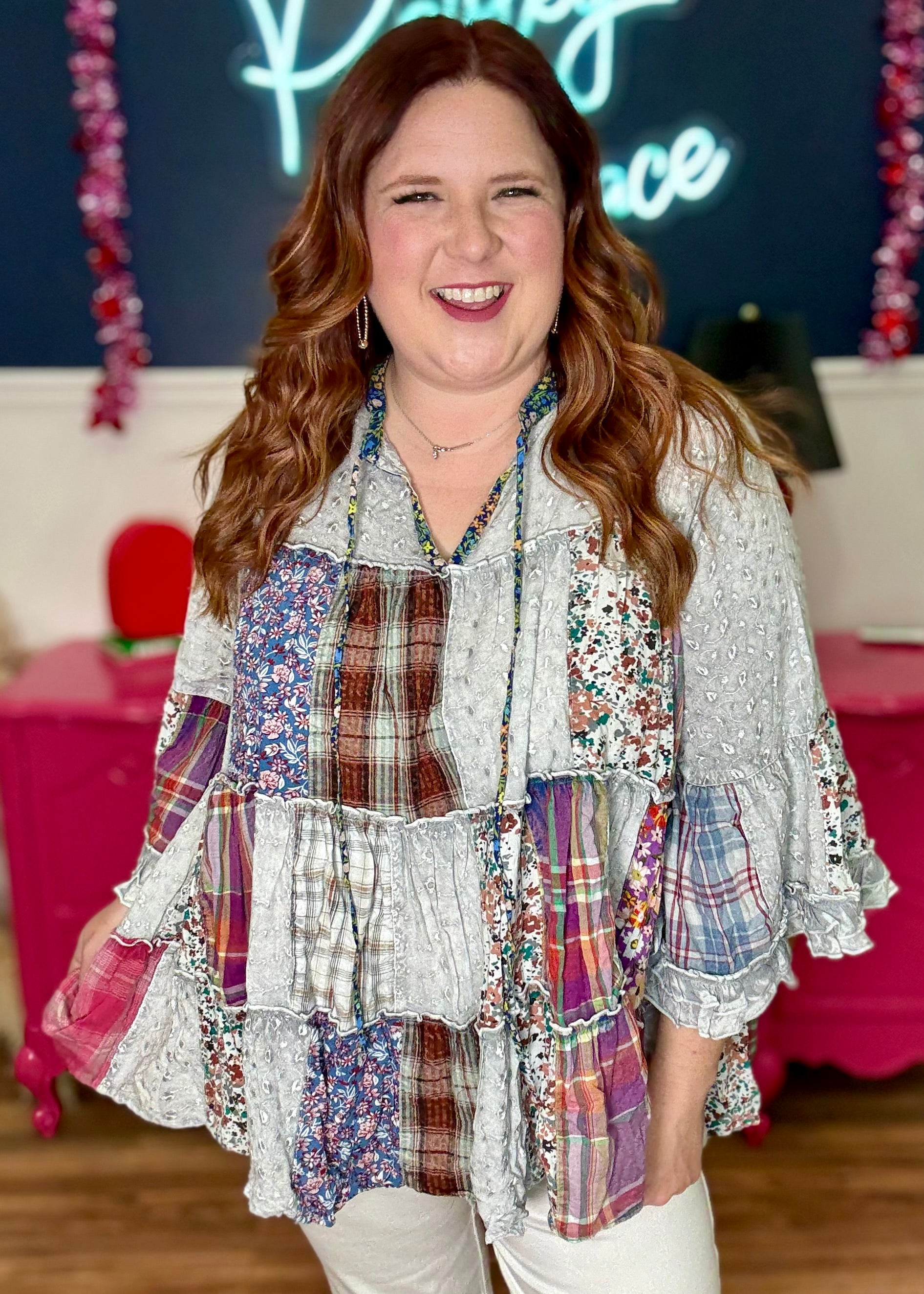 • Keyhole Neckline | Mid-length Tiered Sleeves | Tiered Hemline