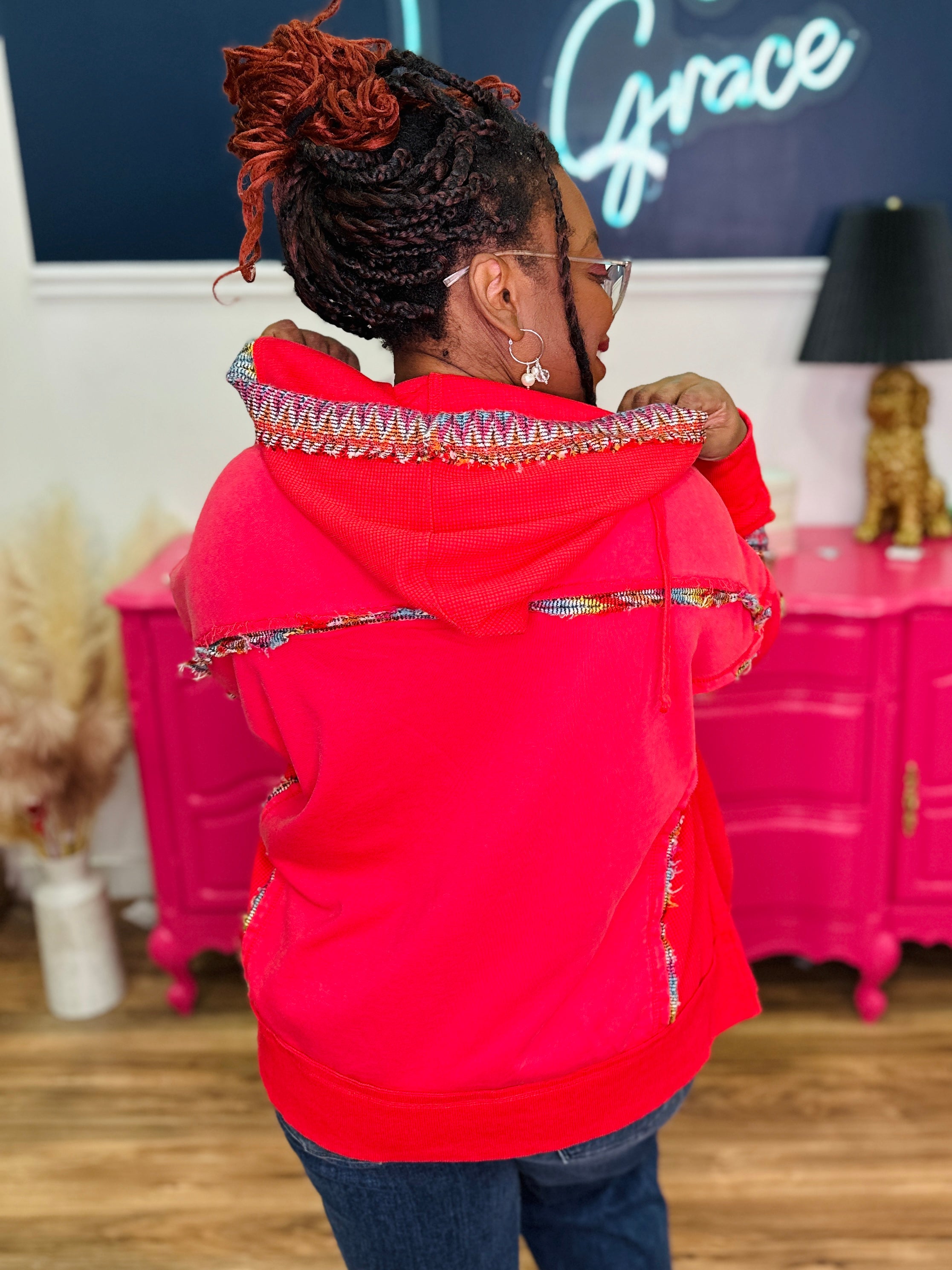 - Hooded Drawstring Neckline | Full-length Sleeves | Straight Hemline