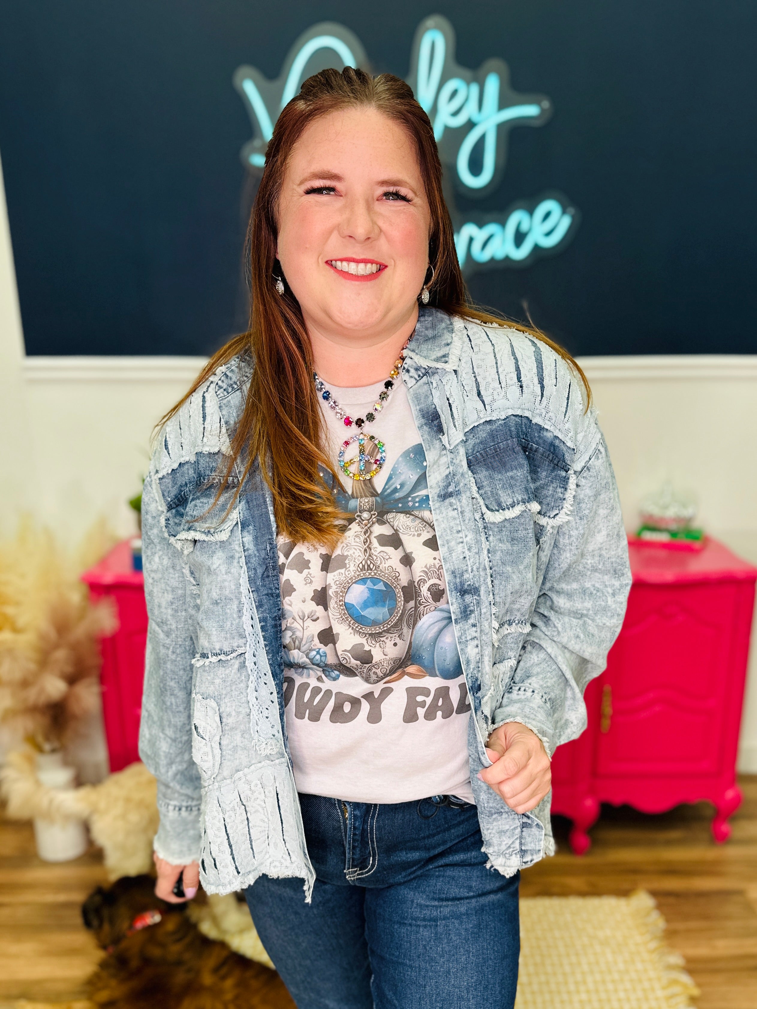 - Collared Neckline | Full-length Sleeves | Curved Frayed Hem