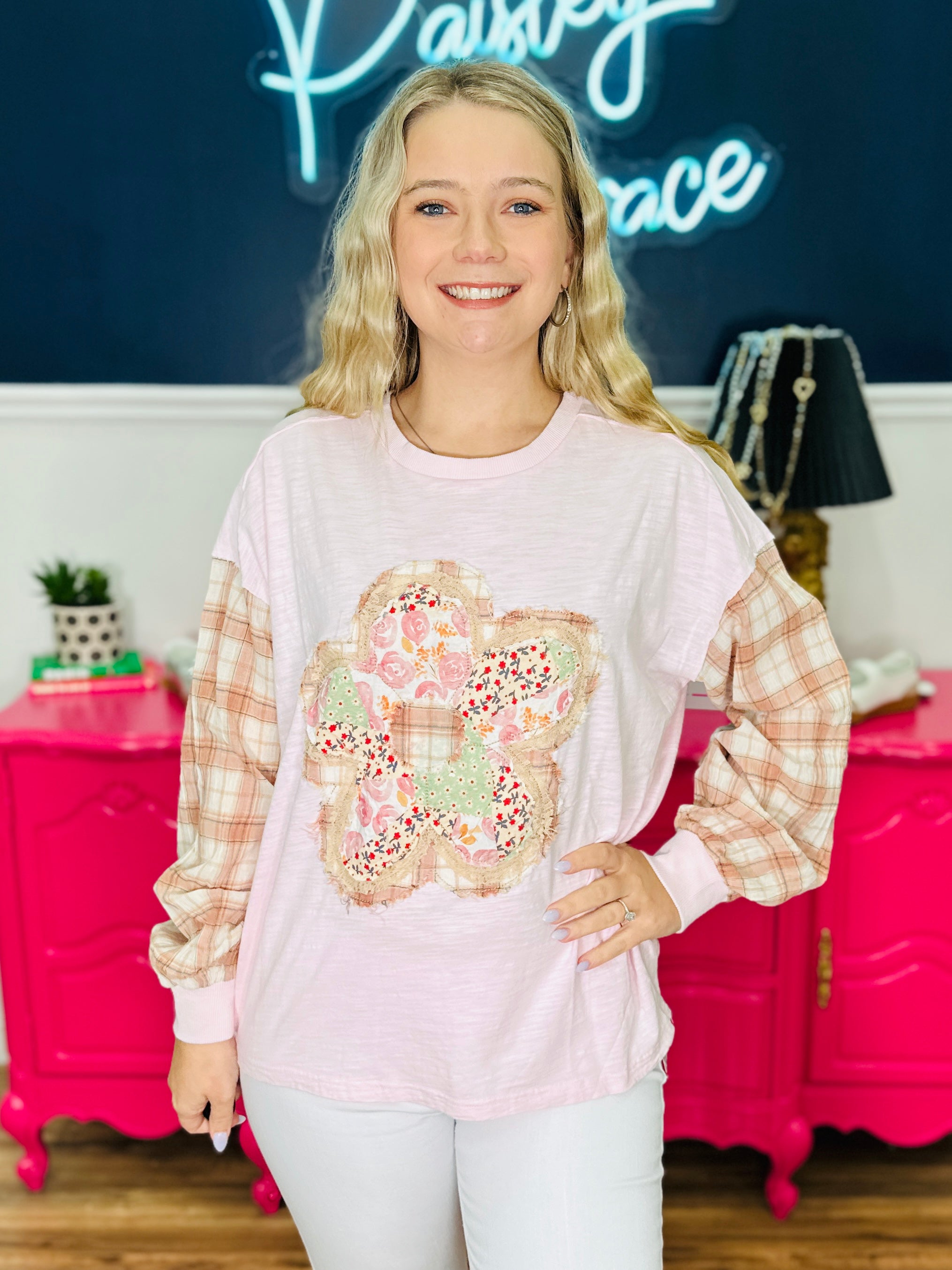 - Light Pink with Tan & Yellow Contrast Patchwork