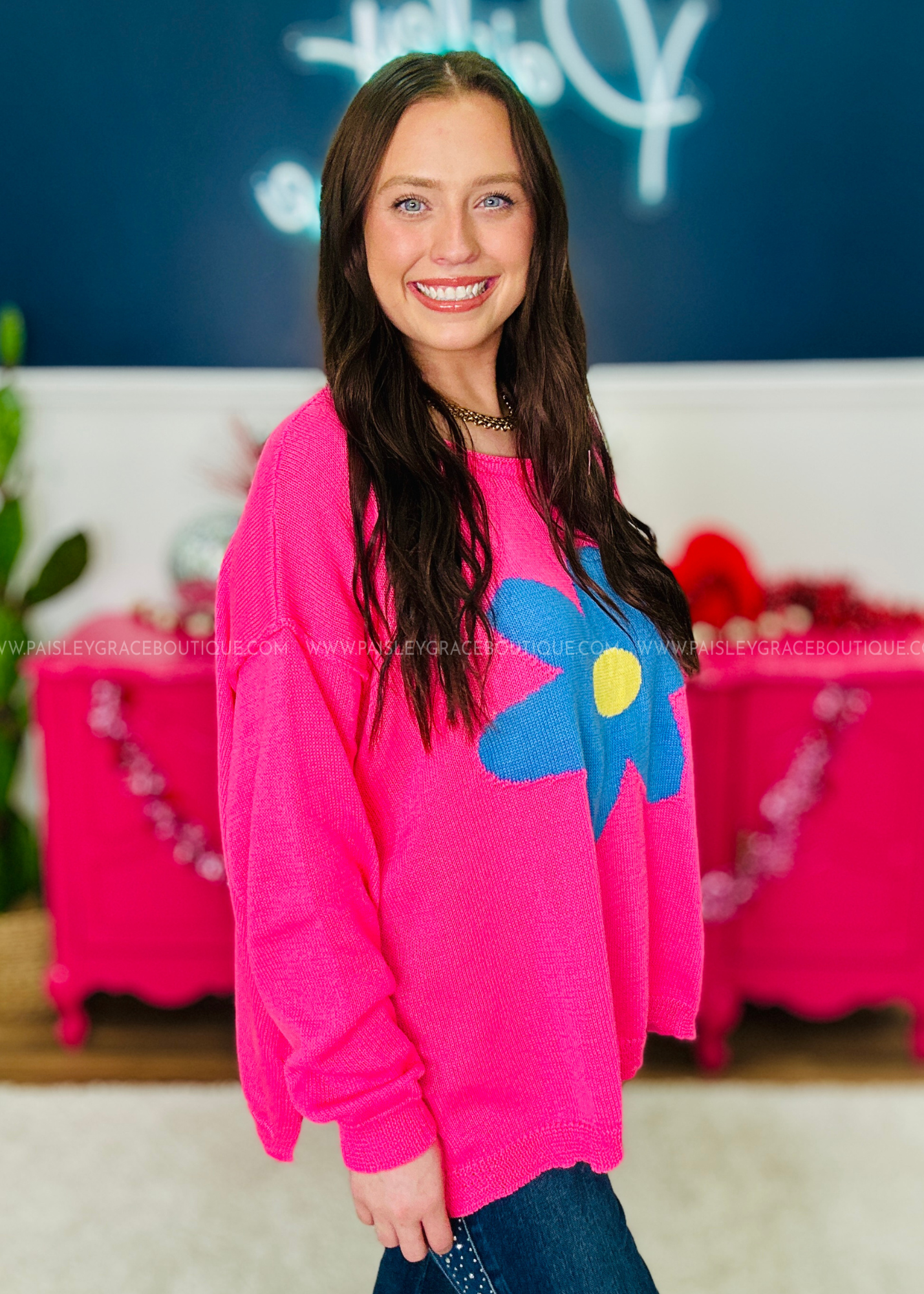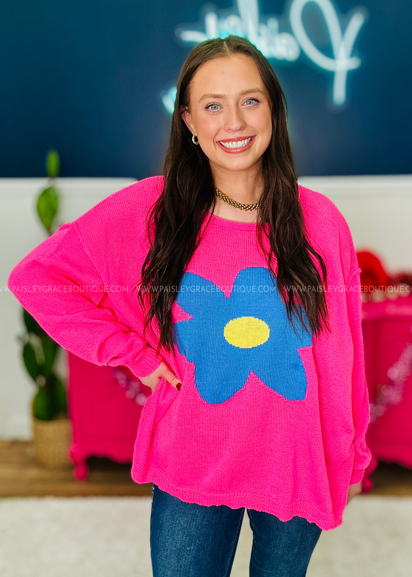 Description: DAISY PATTERN KNIT SWEATER TUNIC